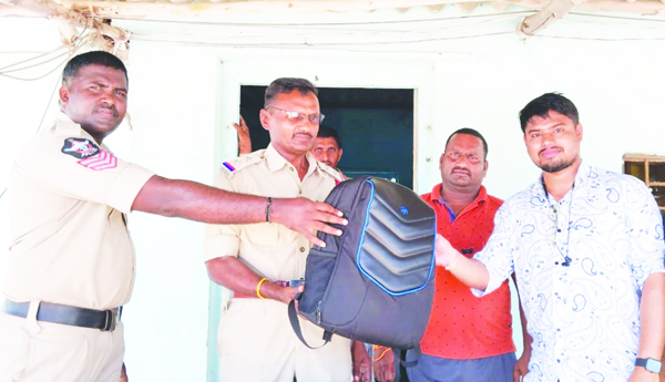 ప్రజాశక్తి-బాపట్ల: సముద్ర స్నానానికి వచ్చిన యువకులు పోగొట్టుకున్న బ్యాగును మెరైన్ పోలీసులు తిరిగి అప్పగించిన సంఘటన ఆదివారం బాపట్ల జిల్లా సూర్యలంక బీచ్లో జరిగింది. మెరైన్ ఎస్ఐ శ్రీనివాసరావు తెలిపిన వివరాల ప్రకారం.. హైదరాబాద్కు చెందిన జయదేవ్ బిశ్వాల్ సూర్యలంక బీచ్కు వచ్చాడు. బీచ్లో బ్యాగ్ బ్యాగు పోగొట్టుకున్నాడు. మెరైన్ పోలీసులు విధులు నిర్వహిస్తున్న బాపట్ల రూరల్ పోలీసులు సూర్యలంక ఆటోస్టాండ్ దగ్గర బ్యాగ్ కోసం గాలించారు. అయితే ఆటో డ్రైవర్ సుబ్రహ్మణ్యం నిజాయతీగా బ్యాగులు తెచ్చి సూర్యలంక మెరైన్ ఎస్ఐ శ్రీనివాసరావుకు, అవుట్ పోస్ట్ సిబ్బందికి అప్పజెప్పాడు. వెంటనే మైక్ ద్వారా బ్యాగు దొరికినట్లు సమాచారం అందించారు. పోగొట్టుకున్న జయదేవ్ బిశ్వాల్దిగా గుర్తించి బ్యాగును అందజేశారు. ఆటో డ్రైవర్ నిజాయితీకి మెరైన్ ఎస్ఐ శ్రీనివాసరావు అభినందించారు. బ్యాగును అందజేసిన వారిలో రూరల్ హెడ్ కానిస్టేబుల్ పోతురాజు, పోలీసు సిబ్బంది ఉన్నారు.