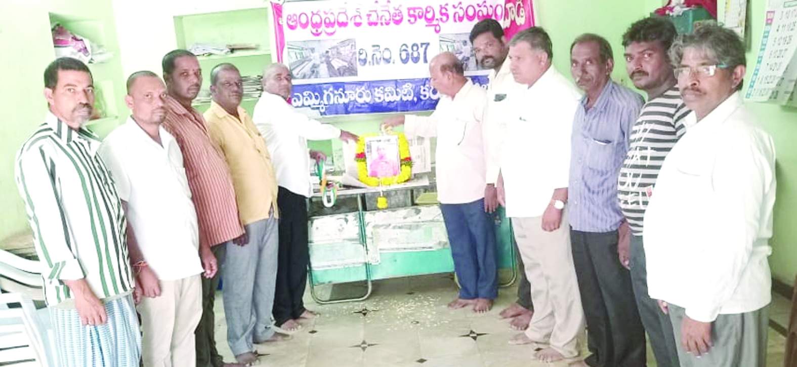 చేనేత కార్మిక సంఘం రాష్ట్ర అధ్యక్షులు కీర్తిశేషులు పోలా రామాంజనేయులు ఆశయ సాధనకు కృషి చేస్తామని వృత్తి సంఘాల జిల్లా నాయకులు పి.గోవిందు, చేనేత కార్మిక సంఘం అధ్యక్ష, కార్యదర్శులు కామర్తి లక్ష్మన్న, భరణి కాలప్ప తెలిపారు. మంగళవారం పట్టణంలోని సుందరయ్య భవన్లో రామాంజనేయులు చిత్రపటానికి పూలమాల వేసి నివాళులర్పించారు. వారి కుటుంబానికి తీవ్ర ప్రగాఢ సానుభూతి తెలిపారు. ఈ సందర్భంగా వారు మాట్లాడారు. పోలా రామాంజనేయులు చేనేత కార్మిక సంఘం రాష్ట్ర అధ్యక్షులుగా చేనేత కార్మికుల సమస్యల పరిష్కారం కోసం కేంద్ర, రాష్ట్ర ప్రభుత్వాలపై పోరాటం చేశారని కొనియాడారు. గతేడాది అక్టోబర్ 2న ఎమ్మిగనూరులో జరిగిన చేనేత కార్మిక సంఘం రాష్ట్ర మహాసభలో పోలా రామాంజనేయులు రాష్ట్ర అధ్యక్షులుగా ఎన్నికయ్యారని తెలిపారు. ఇటీవల ఆయన అనారోగ్యంతో మృతి చెందారని చెప్పారు. చేనేత కార్మికులకు ఆయన చేసిన సేవలు మరువరానివని తెలిపారు. చేనేత కార్మికుల సమస్య పరిష్కారం కోసం పని చేసిన పోలా రామాంజనేయులు ఆశయాలను ముందుకు తీసుకెళ్తామని చేనేత కార్మికులతో ప్రతిజ్ఞ చేయించారు. ఒకప్పుడు దేశానికే పేరెన్నిక గన్న ఎమ్మిగనూరు చేనేత సొసైటీ నేడు కకావికలమైందని పేర్కొన్నారు. ఎమ్మిగనూరులో చేనేత నేసిన చీరలను కొనుగోలు చేసే ఎక్స్పోర్ట్ సెంటర్ను ఏర్పాటు చేయాలని కోరారు. ప్రతి చేనేత కార్మికుడికీ 'నేతన్న నేస్తం' అందించాలని డిమాండ్ చేశారు. చేనేత కార్మికులకు పింఛన్లు మంజూరు చేయడంలో సచివాలయ సిబ్బంది, ప్రభుత్వ అధికారులు ఇబ్బందులకు గురి చేస్తున్నారని విమర్శించారు. చేనేత కార్మిక సంఘం నాయకులు ఎం.రాజు, ఎం.ఎల్లప్ప, ఎస్.శ్రీను, ఎం.తిమ్మప్ప, బి.నాగరాజు, కె.కృష్ణ, సిఐటియు నాయకులు రాముడు, రాజు పాల్గొన్నారు.