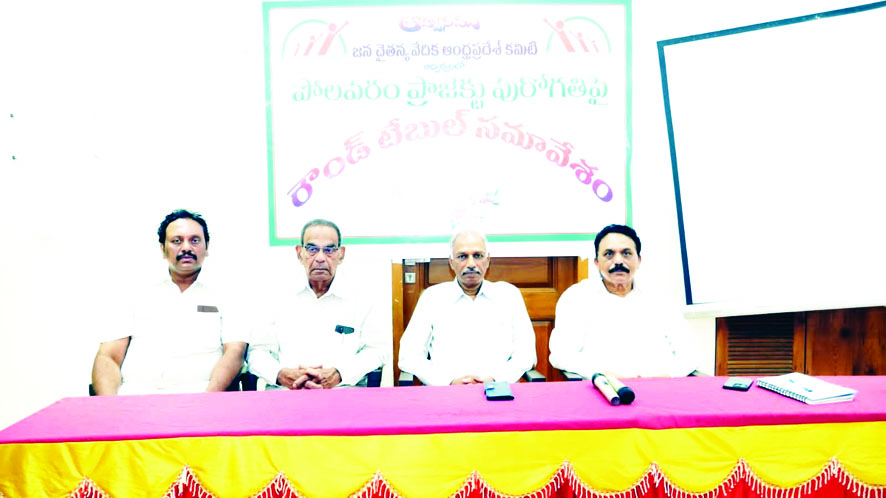గుంటూరుజిల్లా ప్రతినిధి: పోలవరం బహుళార్ధక సాధక ప్రాజెక్టును కేంద్ర, రాష్ట్ర ప్రభుత్వాలు సంక్షోభంలోకి నెట్టాయని జన చైతన్య వేదిక ఆధ్వర్యంలో ఈ నెల 27వ తేదీన గుంటూరులోని జనచైతన్య వేదిక హాల్లో పోలవరం ప్రాజెక్టు పురోగతి పై జరిగిన రౌండ్ టేబుల్ సమావేశంలో వక్తలు పేర్కొన్నారు. రౌండ్ టేబుల్ సమావేశానికి జనచైతన్య వేదిక రాష్ట్ర అధ్యక్షులు వి.లక్ష్మణరెడ్డి అధ్యక్షత వహించారు. వ్యవసాయ, నీటిపారుదల నిపుణులు అక్కినేని భవానీ ప్రసాద్ ప్రసంగిస్తూ బచావత్ అవార్డులో ప్రకటించిన విధంగా పోలవరం ప్రాజెక్టు నిర్మాణం జరగాలన్నారు. 150 అడుగుల ఎత్తును తగ్గించే అధికారం కేంద్ర రాష్ట్ర ప్రభుత్వాలకు లేదన్నారు. లక్ష మందికి పైగా ఉన్న నిర్వాసితులకు 2013 భూ సేకరణ చట్టం ప్రకారం పూర్తి నష్టపరిహారాన్ని కేంద్ర ప్రభుత్వమే భరించాలన్నారు. ప్రముఖ సామాజిక విశ్లేషకులు టి. లక్ష్మీనారాయణ ప్రసంగిస్తూ2014-2019 మధ్యనాటి ప్రభుత్వం పోలవరం పై 11,450 కోట్లు వెచ్చిస్తే నేటి ప్రభుత్వం గత 50 నెలలలో 4450 కోట్లు మాత్రమే ఖర్చు చేసిందన్నారు. నిర్వాసితులకు పునరావాస కల్పన కోసం 33 వేల కోట్లు చెల్లించాలని ఇప్పటివరకు 7000 కోట్లు మాత్రమే చెల్లించిందన్నారు. నిర్వాసితుల్లో 55 శాతం గిరిజనులు ఉన్నారని తెలిపారు. పోలవరం ప్రాజెక్టు త్వరతగతిన అమలు చేయడానికి కేంద్ర ప్రభుత్వంపై నేటి ప్రభుత్వం ఒత్తిడి తేలేకపోతుందన్నారు. పోలవరం ప్రాజెక్టు అథారిటీ కార్యాలయాలని వెంటనే హైదరాబాదు నుండి రాజమండ్రి కి మార్చాలన్నారు. జన చైతన్య వేదిక రాష్ట్ర అధ్యక్షులు వల్లం రెడ్డి లక్ష్మణ రెడ్డి ప్రసంగిస్తూ పోలవరం ప్రాజెక్టు అమలుకు మించిన సంక్షేమ కార్యక్రమం మరొకటి లేదన్నారు. కోట్లాది ప్రజల జీవన ప్రమాణ స్థాయిని పెంచే జీవనాడి పోలవరం అని వివరించారు. అఖిలభారత పంచాయితీ పరిషత్ జాతీయ ఉపాధ్యక్షులు డాక్టర్ జాస్తి వీరాంజనేయులు, బి సీ మహాజన సభనేత ఉగ్గం సాంబ శివరావు, చరిత్ర అధ్యాపకులు డాక్టర్ పి పోతురాజు, తెలుగు అధ్యాపకులు డాక్టర్ బి.సింగారావు ప్రసంగించారు.