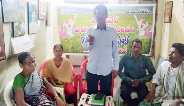 ప్రజాశక్తి- టెక్కలి రూరల్: ఐక్య పోరాటాలతోనే ప్రజా సమస్యలు పరిష్కారమవుతాయని, దీనికి సిద్ధం కావాలని ఎపి వ్యవసాయ కార్మిక సంఘం జిల్లా సహయ కార్యదర్శి కొల్లి ఎల్లయ్య పిలుపునిచ్చారు. సిఐటియు కార్యాలయంలో టెక్కలి మండలం వ్యవసాయ కార్మిక సంఘం అధ్యక్షులు డి.మల్లేష్ అధ్యక్షతన మంగళవారం సమావేశం నిర్వహించారు. ఈ సందర్భంగా మాట్లాడుతూ 1934లో నెల్లూరు జిల్లా అలగానిపాడులో అమరజీవి మహానేత కామ్రేడ్ పుచ్చలపల్లి సుందరయ్య వ్యవసాయ కార్మిక సంఘాన్ని ఏర్పాటు చేశారన్నారు. అప్పటి నుంచి నేటి వరకు పలు శాఖలుగా విస్తరించి దేశంలో కోటికి పైగా సభ్యత్వం కలిగిన అతి పెద్ద సంఘంగా ఎదిగిందన్నారు. వ్యవసాయ కార్మికులకు చేతినిండా పని కల్పించి పనికి తగ్గ కూలి ఇవ్వాలని డిమాండ్ చేశారు. వ్యవసాయ కార్మికులకు మౌలిక సమస్యలైన అందరికీ ఉపాధి, ఇళ్లు, సాగు భూమి, సమానత్వం, సామాజిక న్యాయం, ఆహార భద్రత, విద్య, వైద్యం తదితర సమస్యలను ప్రభుత్వం పరిష్కరించాలని డిమాండ్ చేశారు. రాష్ట్ర ప్రభుత్వం నవరత్నాలు పేరుతో ప్రకటించిన పథకాలతో పాటు అర్హులైన పేదలందరికీ మూడు ఎకరాలు భూమి పంపిణీ చేయాలన్నారు. ఉపాధి హామీ చట్టాన్ని సమర్ధవంతంగా అమలు చేయాలన్నారు. జాబ్కార్డుదారులందరికీ 200 రోజులు పని కల్పించాలని, రోజుకు రూ.600 కూలి ఇవ్వాలని డిమాండ్ చేశారు. అనంతరం నూతన కమిటీని ఎన్నుకున్నారు. మండల వ్యవసాయ కార్మిక సంఘం అధ్యక్ష, కార్యదర్శులుగా డి.నీల వేణి, బి.మల్లేష్, మరో పది మంది సభ్యులను ఏకగ్రీవంగా ఎన్నుకున్నారు. కార్యక్రమంలో రవి, రాజు, కృష్ణ పాల్గొన్నారు.