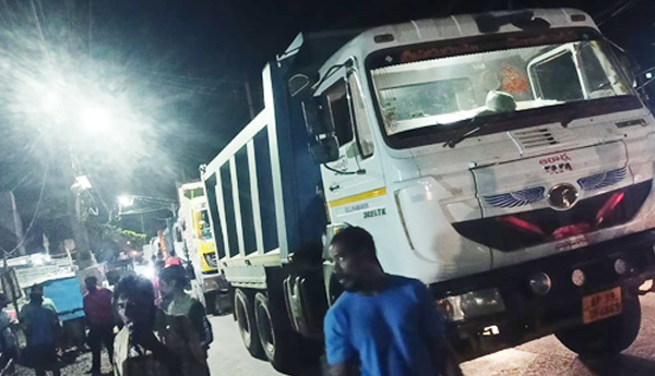 ప్రజాశక్తి - సంతబొమ్మాళి: మూలపేట అదానీ పోర్టు ఆర్ అండ్ ఆర్ కాలనీ కోసం గ్రావెల్ తరలిస్తున్న టిప్పర్ ఢకొీని సంతబొమ్మాళికి చెందిన తంగి గణపతికి స్వల్ప గాయాలయ్యాయి. దీంతో ఆగ్రహించిన సంతబొమ్మాళి గ్రామస్తు గ్రావెల్ తరలిస్తున్న పోర్టు వాహనాలను మంగళవారం రాత్రి అడ్డుకున్నారు. పదుల సంఖ్యలో టిప్పర్లు ఆగిపోవడంతో పాలేశ్వరస్వామి ఆలయం నుంచి సంతబొమ్మాళి ఎంపిడిఒ కార్యాలయం వరకు కిలోమీటర్ల మేర ట్రాఫిక్ స్తంభించింది. పోర్టు వాహనాలు నిత్యం సంతబొమ్మాళి గ్రామంలో రాకపోకలు సాగిస్తుండడంతో ప్రమాదాలు చోటు చేసుకుంటున్నాయని, ఎన్నిసార్లు చెప్పినా డ్రైవర్లు అతివేగంతో వాహనాలను నడుపుతున్నారని గ్రామస్తులు ఆగ్రహం వ్యక్తం చేశారు. గ్రామంలోని కూడలిలో నిత్యం రద్దీగా ఉండే ప్రాంతాల్లోనూ వేగంగా నడపడంతో ఇబ్బందులు పడుతున్నామన్నారు. పలుమార్లు వాహన డ్రైవర్లకు చెప్పినా పట్టించుకోవడం లేదని, అడిగిన వారిపై దురుసుగా ప్రవర్తిస్తున్నారని తెలిపారు. సంతబొమ్మాళి ఎస్ఐ కె.మధుసూదనరావు డ్రైవర్లకు కౌన్సెలింగ్ ఇచ్చినా తీరు మారలేదని చెప్పారు. ఇలాగే కొనసాగితే పోర్టు వాహనాలను గ్రామంలో తిరగనీయకుండా అడ్డుకుంటామని హెచ్చరించారు.