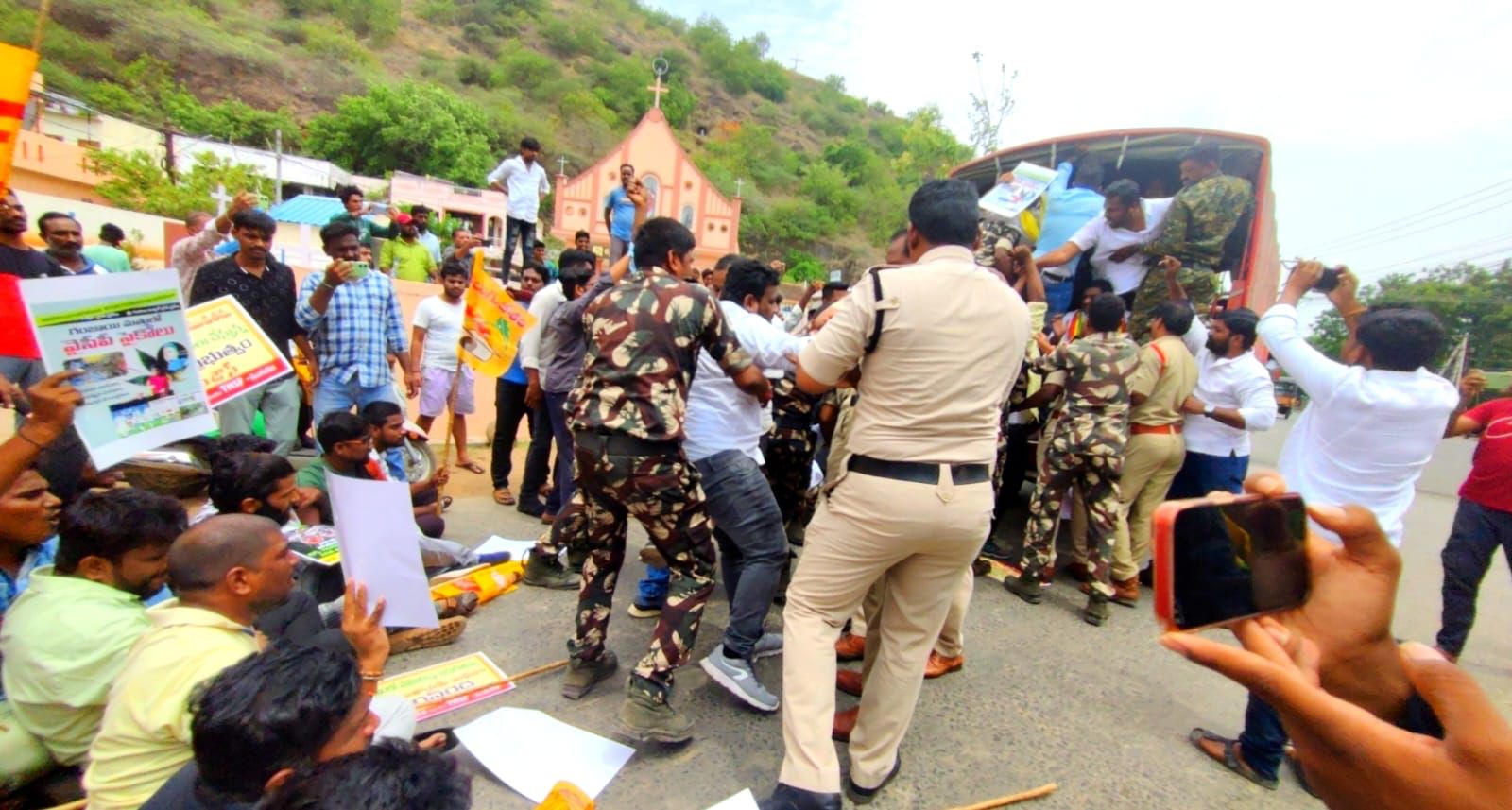 ప్రజాశక్తి దుగ్గిరాల : జగన్ పాలనలో మహిళలకు రక్షణ కరువైందని తెలుగుదేశం పార్టీ మహిళా నాయకులు ఆరోపించారు. ఏలూరులో నాలుగు రోజుల క్రితం యాసిడ్ దాడికి గురైన చికిత్స పొందుతున్న మహిళను పరామర్శించేందుకు తాడేపల్లి మణిపాల్ ఆసుపత్రికి వెళ్లిన తెలుగు మహిళలను పోలీసులు అరెస్టు చేసి ఆదివారం దుగ్గిరాల పోలీస్ స్టేషన్కు తరలించారు. ఈ సందర్భంగా వారు మాట్లాడుతూ మహిళల మీద దాడికి కారణం గంజాయి అని రాష్ట్రం గంజాయి విక్రయాల్లో అగ్రస్థానంలో ఉన్నదని విమర్శించారు. జగన్ పాలనలో మహిళలకు రక్షణ కరువైంది గౌరవం లేకుండా పోయిందని వాపోయారు. బాధితురాలి కుటుంబానికి రూ.10 లక్షలు ఇస్తామని ప్రకటించిన జగన్ ప్రభుత్వం రూ.లక్ష ఇచ్చి పది లక్షలు ఇచ్చామని చెప్పమన్నారు అని విమర్శించారు. బాధితురాలికీ ఏమైనా జరిగితే జగన్ బాధ్యత వహించాలని డిమాండ్ చేశారు. కార్యక్రమంలో రాష్ట్ర తెలుగు మహిళ అధ్యక్షులు షేక్ అషా ఏలూరు పార్లమెంట్ అధికార ప్రతినిధి విజయలక్ష్మి రాష్ట్ర ప్రధాన కార్యదర్శి ఆకుల జయ సత్య ఎన్టీఆర్ జిల్లా నాయకులు దాసరి ఉదరుశ్రీ, తాడేపల్లి అధ్యక్షులు అన్నే కుసుమ, దుగ్గిరాల మండల అధ్యక్షులు కేశంనేని అనిత, వాణిజ్య విభాగ ప్రధాన కార్యదర్శి గూడూరు వెంకట్రావు, ఉన్నం ఝాన్సీ పాల్గొన్నారు.