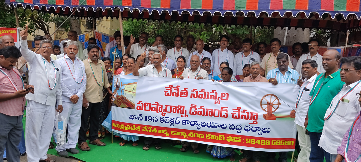 ప్రజాశక్తి-గుంటూరు, నరసరావుపేట : దేశంలో వ్యవసాయ రంగం తర్వాత అతిపెద్ద రంగమైన చేనేత రంగాన్ని ప్రభుత్వాలు నిర్లక్ష్యం చేస్తున్నాయని, చేనేత రంగాన్ని సంక్షోభంలోకి నెట్టి, చేనేత కార్మికుల ఆత్మహత్యలు చేసుకునేలా ప్రభుత్వాల విధానాలున్నాయని ఆంధ్రప్రదేశ్ చేనేత కార్మిక సంఘం రాష్ట్ర ప్రధాన కార్యదర్శి పిల్లలమర్రి బాలకృష్ణ, ఉపాధ్యక్షులు కట్టా శివదుర్గారావు అన్నారు. చేనేత కార్మికుల సమస్యలపై రాష్ట్ర వ్యాప్త పిలుపులో భాగంగా చేనేత ఐక్య కార్యాచరణ కమిటీ ఆధ్వర్యంలో సోమవారం గుంటూరు, నరసరావుపేటలోని కలెక్టరేట్ల వద్ద ధర్నాలు చేశారు. అనంతరం స్పందనలో కలెక్టర్లకు వినతిపత్రాలు ఇచ్చారు. ఈ సందర్భంగా నరసరావుపేట ధర్నాలో చేనేత కార్మిక సంఘం రాష్ట్ర ఉపాధ్యక్షులు కట్టా శివదుర్గారావు మాట్లాడుతూ చేనేత వస్త్రాల ఉత్పత్తికి కావాల్సిన నూలు, జరీ, పట్టు, రంగులు రసాయనాలు, చేనేత వస్త్రాలపై జిఎస్టి పూర్తిగా రద్దు చేయాలని, రాయితీపై పంపిణీ చేయాలని డిమాండ్ చేశారు. ఈ విషయంలో రాష్ట్ర ప్రభుత్వం కేంద్ర ప్రభుత్వానికి సిఫార్సు చేయాలన్నారు. చేనేతలకు కేటాయించిన 11 రకాల వస్త్రాల ఉత్పత్తి రిజర్వేషన్ చట్టాన్ని కఠినంగా అమలు చేస్తూ వస్త్ర ఉత్పత్తి రిజర్వేషన్ చట్టాన్ని ఉల్లంఘించిన వారిపై కఠిన చర్యలు తీసుకోవాలన్నారు. 2023-24 వార్షిక బడ్జెట్లో రాష్ట్ర ప్రభుత్వ బడ్జెట్లో రూ.200 కోట్లను రూ.2 వేల కోట్లకు కేంద్ర బడ్జెట్ లో కేటాయించిన రూ.200 కోట్లను రూ.5వేల కోట్లకు రాబోయే బడ్జెట్లో పెంచాలన్నారు. చేనేత వస్త్రాల అమ్మకాలపై రీబేటూ పథకాన్ని ఆప్కో సంస్థతో పాటు ప్రాథమిక చేనేత సహకార సంఘాలకు కూడా వర్తింపజేయాలని రీబేటు పథకం శాశ్వతంగా అమలయ్యేలా చట్టం చేయాలని కోరారు. చేనేత కార్మికుల వద్ద నిలువ ఉన్న చేనేత వస్త్రాలను ఆప్కో సంస్థ ద్వారా తక్షణమే కొనుగోలు చేసి చెల్లింపులు చేయాలని విద్యాశాఖ, సాంఘిక, షెడ్యూల్, తెగల సంక్షేమ శాఖలలో విద్యార్థులు కొరకు ఉపయోగించే వస్త్రాలు ఆప్కో సంస్థ ద్వారా చేనేత వస్త్రాలను కొనుగోలు చేయాలన్నారు. చేనేత కార్మిక సంఘం పల్నాడు జిల్లా కార్యదర్శి అనుముల వీర బ్రహ్మం మాట్లాడుతూ రాష్ట్రంలో 3 లక్షల మంది చేనేతలు ఉండగా నేతన్న నేస్తాన్ని 80 వేలకు మాత్రమే వర్తింప చేస్తున్నారని చేనేత బడ్జెట్ను మూడు లక్షల మంది చేనేతలకు నేతల నేస్తాన్ని వర్తింపచేయాలని డిమాండ్ చేశారు. ఆప్కో వస్త్ర ప్రోక్యుర్మెంట్ లోని పవర్ లూమ్ వస్త్రాలను దొడ్డిదారిన కొనుగోలు చేయకుండా కఠినంగా చేనేత వస్త్రాలు కొనుగోలు మాత్రమే చేసేలా చర్యలు తీసుకోవాలని చేనేత రంగాన్ని చేనేతను కాపాడాలని డిమాండ్ చేశారు. కార్యక్రమంలో పద్మశాలి సంక్షేమ సంఘం జిల్లా అధ్యక్షులు కస్తూరి వెంకటేశ్వర్లు, కార్యదర్శి 