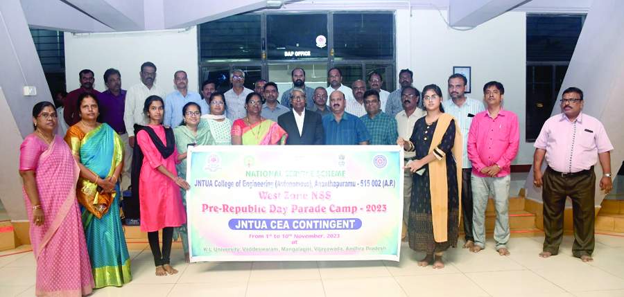 పరేడ్కు ఎంపికైన విద్యార్థులను అభినందిస్తున్న జెఎన్టియు సిబ్బంది