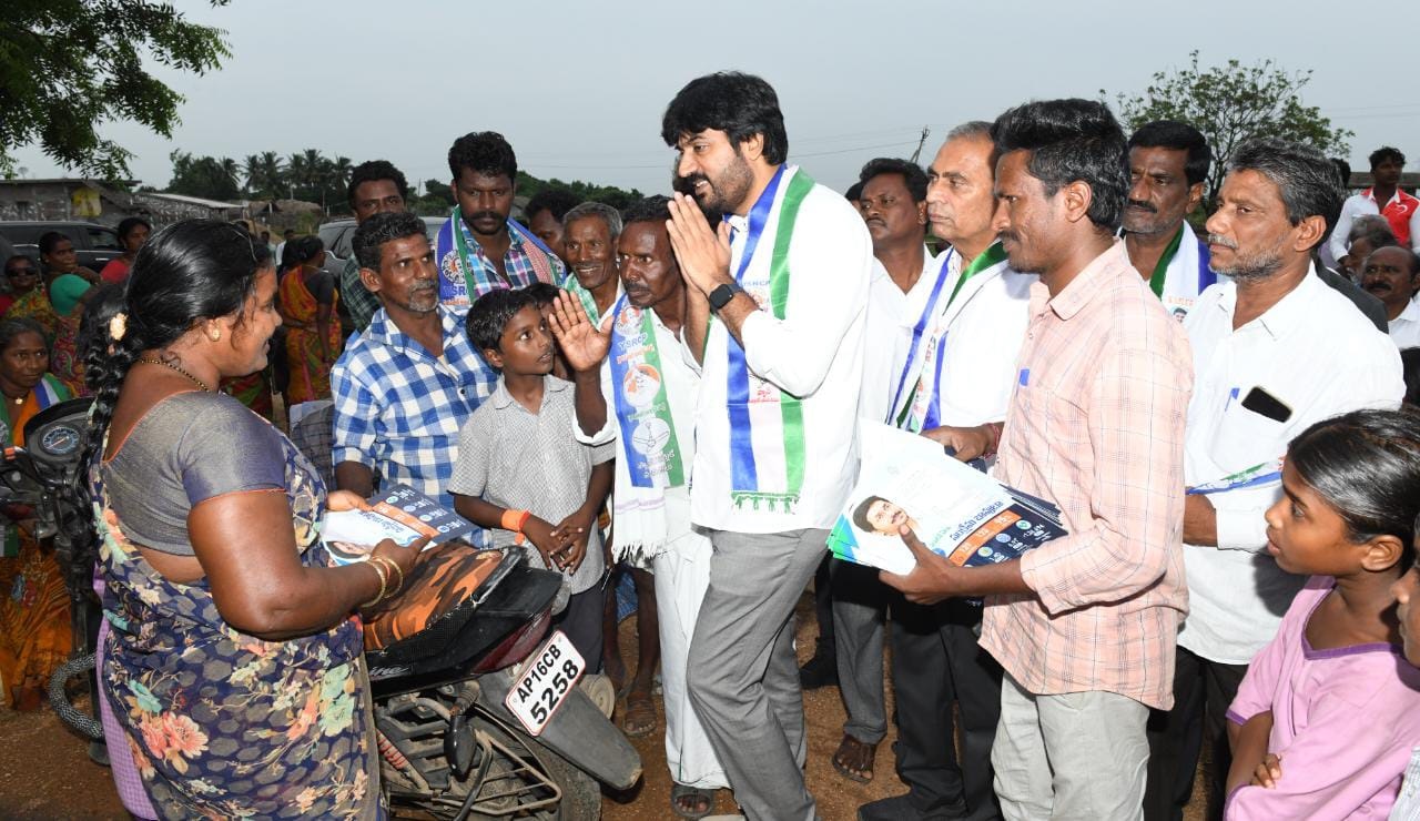 సిఎం వైఎస్ జగన్మోహన్ రెడ్డి నవరత్నాల పేరుతో ప్రతి పేద కుటుంబానికి సంక్షేమ పథకాలు అందే విధంగా పరిపాలన చేస్తున్నారని శాప్ నెట్ కార్పొరేషన్ చైర్మన్, వైసీపీ కన్వీనర్ బాచిన కృష్ణ చైతన్య అన్నారు. మండలంలోని సజ్జాపురం గ్రామంలోని బీసీ కాలనీ, ఎస్సీ కాలనీలో ఆయన గడప గడపకు ప్రభుత్వ కార్యక్రమాన్ని మంగళవారం నిర్వహించారు. ప్రజలను కలిసి సంక్షేమ పథకాలను అడిగి తెలుసుకున్నారు. వాలంటీర్లు, సచివాలయ సిబ్బంది పనితీరును అడిగి తెలుసుకున్నారు. సచివాలయ వ్యవస్థ ద్వారా ప్రజలకు ఇచ్చిన హామీ మేరకు అన్ని సంక్షేమ పథకాలను అమలు చేస్తున్నామన్నారు. పేద ప్రజలను సంక్షేమ పథకాల ద్వారా ఆదుకోవడం ప్రతిపక్ష పార్టీకి నచ్చడం లేదన్నారు. ప్రతిపక్ష పార్టీలు ఎన్ని ఆటంకాలు సృష్టించినా సంక్షేమ పాలన కొనసాగుతుందన్నారు. రాబోయే ఎన్నికలలో తిరిగి జగన్ మోహన్ రెడ్డిని ప్రజలు ఆశీర్వదించాలని కోరారు. కార్యక్రమంలో సర్పంచి అనంతవరపు మార్తమ్మ, జడ్పిటిసి ఆడవి శ్రీనివాసరావు, వైసీపీ మండల కన్వీనర్ చింతా రామారావు, నాయకులు తేలప్రోలు వెంకటరావు, స్వాములు పాల్గొన్నారు.