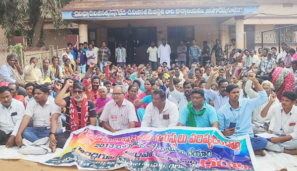 ప్రజాశక్తి-జంగారెడ్డిగూడెం : పోలవరం నిర్వాసితుల సమస్యలు పరిష్కరించాలని జంగారెడ్డిగూడెం ఆర్డీవో కార్యాలయం వద్ద పొలవరం ప్రోజెక్ట్ నిర్వాసితులు బైఠాయించారు. వీరికి మద్దతుగా ప్రోజెక్ట్ నిర్వాసితుల సంఘం, గిరిజన సంఘం, ఆంధ్రప్రదేశ్ వ్యవసాయ కార్మికసంఘం నాయకులు నిలిచారు. నిర్వాసితులకు ఉపాధి కల్పించాలని, భూమికి భూమి ఇవ్వాలని, ఇళ్లు కట్టించాలని, 2013 భూ సేకరణ చట్టాన్ని అమలు చేయాలనీ నినాదాలు చేసారు.