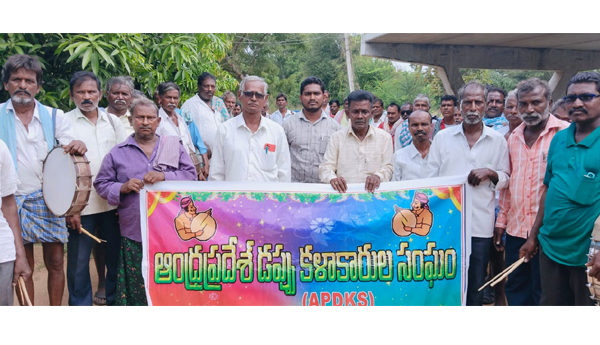 ప్రజాశక్తి-వత్సవాయి: వత్సవాయి మండలంలో డప్పు కళాకారులు గుర్తింపు కార్డులు ఉన్నవారికి డప్పులు, గజ్జలు, మరియు డ్రస్సులు ఇవ్వాలని ఆంధ్రప్రదేశ్ డప్పుకు కళాకారుల సంఘం ఎన్టీఆర్ జిల్లా కార్యదర్శి ఎం కుటుంబరావు డిమాండ్ చేశారు. ఈ సందర్భంగా గుర్తింపు కార్డులో ఉన్న డప్పు కళాకారులకు అందరికీ డబ్బుకులు, గజ్జలు డ్రస్సులు ఇవ్వాలని సోమవారం తాసిల్దార్ కార్యాలయం వద్ద ఆందోళన కార్యక్రమం పెట్టారు ఆందోళన కార్యక్రమంలో ఎంపీడీవో, ఎమ్మార్వోకు వినతి పత్రాలు అందజేశారు. ఎన్టీఆర్ జిల్లా డప్పు కళాకారుల సంఘం జిల్లా కార్యదర్శి ఎం కుటుంబరావు మాట్లాడుతూ వత్సవాయి మండలంలో డప్పు కళాకారులకు రెండు సంవత్సరాల క్రితం ద్వారా డప్పు కళాకారులకు డప్పుకులు, గజ్జలు, డ్రెస్సులు కంపెనీ పంపిణీ చేయకుండా మండల పరిషత్ కార్యాలయంలో ఉన్నాయని, అధికారులకు గతంలో ఎన్నోసార్లు అర్జీలు సమర్పించిన స్పందించకపోవడంతో నేడు తాసిల్దార్ కార్యాలయం వద్ద ఆందోళన కార్యక్రమం నిర్వహించారు. ఈ ఆందోళనకు స్పందించిన ఎంపీడీవో ఎస్ వి ప్రసాద్ మాట్లాడుతూ వారం రోజుల్లో గ్రామ సచివాలయాల ద్వారా గ్రామాల వారిగా అర్హులందరికీ డప్పు కులు, గజ్జలు, డ్రస్సులు అందిస్తామని హామీ ఇచ్చారు. అనంతరం తాసిల్దార్ వినతి పత్రం సమర్పించారు. వత్సవాయి ఎస్సై బడవత్ అభిమన్య ఆందోళన కార్యక్రమాన్ని విరమింప చేశారు. ఈ కార్యక్రమంలో డప్పు కళాకారుల సంఘం మండల అధ్యక్షులు గుడేటి ఆధం, సిఐటియు మండల కార్యదర్శి బి రాము, డప్పు కళాకారులు కళాకారులు నాగేశ్వరరావు, బెంజిమెన్, వెంకటరత్నం, రాములు, యేసు, వెంకటేశ్వర్లు తదితరులు పాల్గొన్నారు*