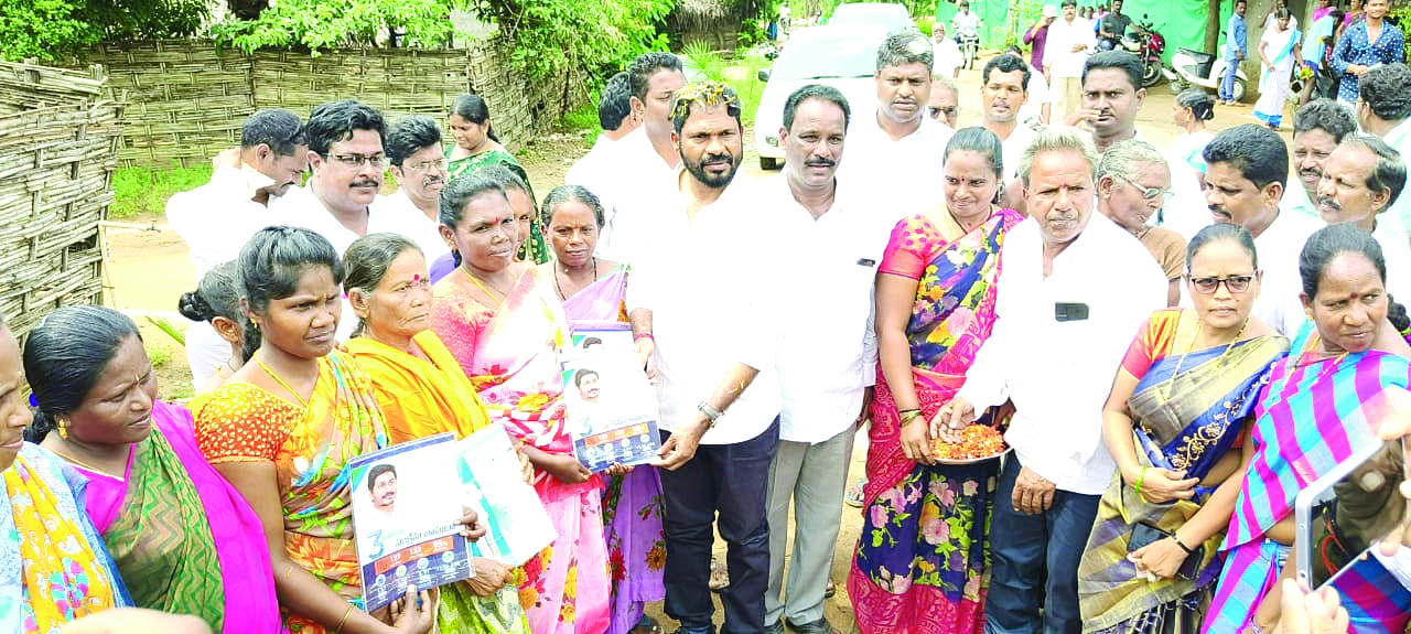 సంక్షేమం, అభివృద్ధే లక్ష్యంగా ప్రభుత్వం పనిచేస్తుందని పోలవరం ఎంఎల్ఎ తెల్లం బాలరాజు అన్నారు. గురువారం గడప గడపకూ మన ప్రభుత్వం కార్యక్రమంలో భాగంగా రాచన్నగూడెం పంచాయతీలో ఎంఎల్ఎ పర్యటించారు. ఈ సందర్భంగా మారుమూల గ్రామాలైన లంకాలపల్లి, గోపాలపురం, తాటిరామన్నగూడెం గ్రామాల్లో ప్రతిగడపకూ వెళ్లి ప్రజాసమస్యలు అడిగి తెలుసుకున్నారు. ఈ సందర్భంగా ఆయన మాట్లాడుతూ వైసిపి ప్రభుత్వం గడిచిన నాలుగేళ్లుగా ఎన్నో అభివృద్ధి, సంక్షేమ పథకాలను ప్రవేశపెట్టిందన్నారు. పేదల సంక్షేమమే ధ్యేయంగా ప్రభుత్వం పనిచేస్తుందన్నారు. ప్రతీకుటుంబానికి జరిగిన లబ్ధిని అడిగి తెలుసుకున్నారు. గ్రామాల్లో జరిగిన అభివృద్ధి పథకాలను ప్రజలకు వివరించారు. ఈ సందర్భంగా గ్రామాల్లోని పలు సమస్యలను ప్రజలు ఎంఎల్ఎ దృష్టికి తీసుకువచ్చారు. అనంతరం ఇటీవల అగ్ని ప్రమాదంలో ఇల్లు కోల్పోయిన కుటుంబానికి రూ.పది వేలు ఆర్థిక సహాయం చేశారు.