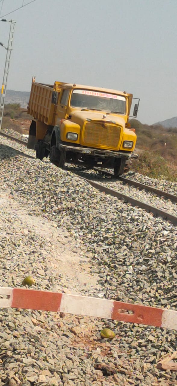 రైల్వే పట్టాలపై లారీ పరుగులు