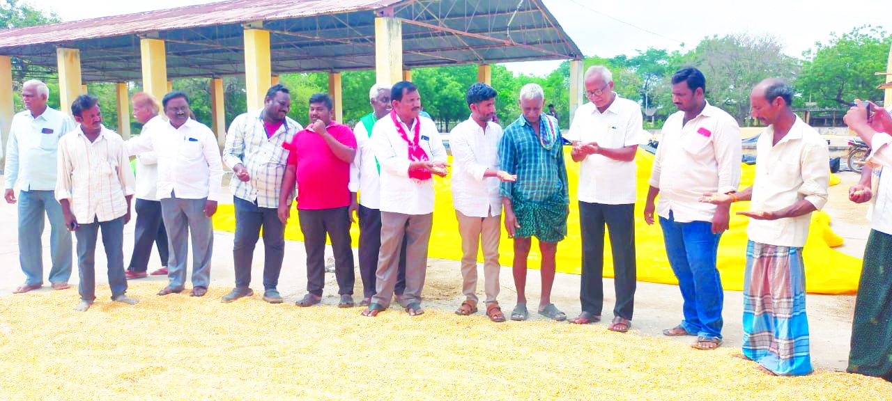 ప్రజాశక్తి-మైలవరం: రైతు పండించిన ప్రతి గింజను కొనుగోలు చేస్తామని సీఎం జగన్ చెప్పిన మాటను నిలబెట్టుకోవాలని సిపిఎం ఎన్టీఆర్ జిల్లా కార్యదర్శి డి.వి.కృష్ణ డిమాండ్ చేశారు. ఇటీవల కురిసిన అకాల వర్షాలకు స్థానిక ఏఎంసీలో తడిసిన మొక్కజొన్న, ధాన్యాన్ని మంగళవారం సిపిఎం, రైతు సంఘం నాయకులు పరిశీలించారు. మొక్కజొన్న, ధాన్యాన్ని ఎంతవరకు కొంటున్నారని రైతులను అడిగి తెలుసుకున్నారు. 15 రోజుల నుండి ఏఎంసిలోనే ఉంటున్నామని, అధికారులు సరైన సమాధానం చెప్పడం లేదని, దళారుల ప్రమేయం ఎక్కువగా ఉందని పలువురు రైతులు నాయకులు వద్ద వాపోయారు. అనంతరం రైతులతో కలిసి ఏఎంసి వద్ద జాతీయ రహదారిపై నిరసన చేసేందుకు నాయకులు వెళ్తుండగా మైలవరం సిఐ మోహన్రెడ్డి తన సిబ్బందితో అడ్డుకున్నారు. పోలీసులకు, నాయకులకు గంటసేపు వాగ్వాదం జరిగింది. మొక్కజొన్న, ధాన్యాన్ని వెంటనే కొనుగోలు చేయాలని, పత్తాలేని అధికారులు సమాధానం చెప్పాలని నినాదాలు చేశారు. ఈ సందర్భంగా డి.వి.కృష్ణ మాట్లాడుతూ రైతులు తెచ్చిన పంటను సకాలంలో కొనేవారు లేకపోవడంతో మొక్కజొన్న, ధాన్యం తడిచాయని, దీనికి ఎవరు బాధ్యత వహిస్తారని ప్రశ్నించారు. రైతు పండించిన పంటకు రక్షణ కరువైందన్నారు. రైతులు తమ పంటలను తడవకుండా ఏఎంసిలో నిల్వ చేసుకునే అవకాశం ఉండగా దానికి విరుద్ధంగా ఐరన్ను నిల్వ ఉంచటం విడ్డూరంగా ఉందన్నారు. తక్షణమే ప్రభుత్వం ప్రకటించిన మద్దతు ధరకే ప్రతి గింజను కొనుగోలు చేయాలని, నష్టపోయిన రైతుకు న్యాయం జరగాలని కోరారు. రైతు సంఘం జిల్లా ప్రధాన కార్యదర్శి పివి ఆంజనేయులు మాట్లాడుతూ ప్రతి గింజను ఆర్బికె ద్వారా కొనుగోలు చేస్తామని ఆర్భాటంగా చెప్పిన ప్రభుత్వం ఇంతవరకు ఒక్క గింజను కూడా కొనుగోలు చేయలేదన్నారు. ఆర్బికె అధికారులు, దళారులు కుమ్మక్కై కమీషన్ల కోసం రైతులను మోసం చేస్తున్నారన్నారు. దీంతో పెట్టిన పెట్టుబడులు రాక రైతులకు ఆత్మహత్యలే తప్ప మరో మార్గం లేదన్నారు. అనంతరం ఏఎంసి కార్యాలయం వద్దకు చేరుకొని అక్కడ సమాధానం చెప్పే అధికారులు లేకపోవడంతో ఉన్న సిబ్బందిని కూడా బయటికి పంపించి కార్యాలయం వద్ద నిరసన కార్యక్రమం చేపట్టారు. ఈ సందర్భంగా అధికారులు వెంటనే రావాలని, ప్రభుత్వం వెంటనే స్పందించాలని డిమాండ్ చేస్తూ నినాదాలు చేశారు. విషయాన్ని కలెక్టర్ ఢిల్లీరావు దష్టికి నాయకులు తీసుకెళ్లగా ఆయన స్పందించి వెంటనే మార్క్ఫెడ్ ఏడిఎం కిషోర్ను మైలవరం ఎఎంసి వద్దకు పంపించారు. సిపిఎం, రైతు సంఘం నాయకులతో మాట్లాడారు. తడిసిన ధాన్యాన్ని, మొక్కజొన్నను ప్రభుత్వం ప్రకటించిన మద్దతు ధరకే కొనుగోలు చేయాలని, రైతులందరికీ టార్ఫాలిన్ పట్టాలు ఇవ్వాలని, దళారులను ఏఎంసికి రాకుండా నిలువరించాలని, ఏఎంసిలో నిల్వ ఉంచిన ఐరన్ వెంటనే తీసేయాల