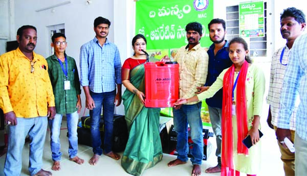 వ్యవసాయ పరికరాలు అందజేస్తున్న స్వాతి తదితరులు