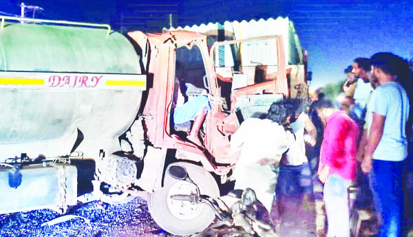ప్రజాశక్తి-మార్టూరు రూరల్: లారీని పాల ట్యాంకర్ ఢకొీన్న ప్రమాదంలో డ్రైవర్ తీవ్రంగా గాయపడిన ఘటన మార్టూరు ఫ్లై ఓవర్ బ్రిడ్జిపై జడ్పీ హైస్కూల్ ఎదురుగా శుక్రవారం అర్ధరాత్రి చోటు చేసుకుంది. యద్దనపూడి 108 సిబ్బంది ప్రసాద్ తెలిపిన వివరాల ప్రకారం.. చిలకలూరిపేట నుంచి అద్దంకి మండలం బొమ్మనంపాడు పాల కేంద్రానికి వెళుతున్న పాల ట్యాంకర్ డ్రైవర్ నాయుడు సుధీర్బాబు మార్టూరు ఫ్లై ఓవర్ బ్రిడ్జిపై ముందు వెళుతున్న లారీ టైరు పంచరు కావడంతో ఒక్కసారిగా నెమ్మదించింది. హఠాత్తుగా జరిగిన ఈ పరిణామంతో పాల ట్యాంకర్ను డ్రైవర్ అదుపుచేయలేక లారీని బలంగా ఢ కొట్టాడు. ఈ ఘటనలో డ్రైవర్ సుధీర్ బాబు తీవ్రంగా గాయపడి ట్యాంకర్ కేబిన్లో ఇరుక్కుపోయాడు. ఒక్కసారిగా వచ్చిన పెద్ద శబ్దానికి బ్రిడ్జి కింద ఉన్న స్థానికులు ప్రమాదాన్ని గుర్తించి 108కి సమాచారమిచ్చారు. లారీలో ఇరుక్కుపోయి ఆర్తనాదాలు చేస్తున్న సుధీర్ను అతి కష్టంమీద బయటకు తీశారు. 108 వాహనంలో ముందుగా మార్టూరు ప్రభుత్వ వైద్యశాలకు తరలించారు. కాలు విరిగి తీవ్రంగా గాయపడిన డ్రైవర్ను మెరుగైన వైద్యం కోసం ఒంగోలు కిమ్స్ వైద్యశాలకు తరలించారు. కేసు నమోదు చేసి దర్యాప్తు చేస్తున్నట్లు మార్టూరు పోలీసులు తెలిపారు.