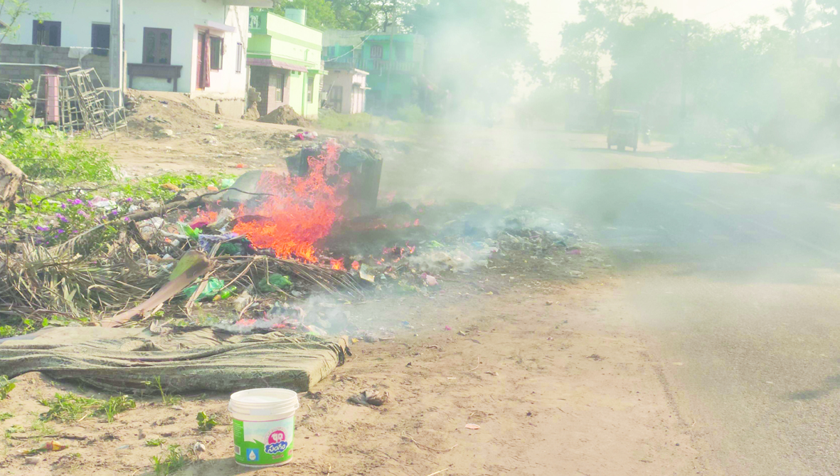 పంచాయతీ అధికారుల విధి నిర్వహణపై ఉన్నతాధికారుల పర్యవేక్షణ లేకపోవడంతో వారి తీరుతో వాహనదారులు, గ్రామస్తులు తీవ్ర ఇబ్బందులు ఎదుర్కొంటున్నారు. జాతీయ రహదారిపై ఉన్న చెత్తను సంపద కేంద్రానికి తరలించకుండా రహదారిపైనే తగలబెట్టేస్తున్నారు. దీంతో భారీ స్థాయిలో కాలుష్యం వెదజల్లడంతో పాటు దట్టమైన పొగ ఏర్పడడంతో ఎదురుగా వచ్చే వాహనాలు కనిపించక వాహనదారులు ఇబ్బందులు ఎదుర్కొన్నారు. జాతీయ రహదారితో పాటు గ్రామంలోని పలు ప్రాంతాలు చెత్తకుప్పలకు నిలయం అయిపోయాయి. దీంతో ఆ చెత్తకుప్పల నుంచి దుర్గంధం వెదజల్లడంతో పాటు దోమల వ్యాప్తికి నిలయాలుగా మారాయి. దీనిపై చెత్త రహదారులు శీర్షికన ప్రజాశక్తిలో కథనం ప్రచురితమైంది. దీంతో ఎవరు ఏమి ఆదేశించారో ఏమో కాని చెత్తను సంపద కేంద్రానికి తరలించకుండా పంచాయతీ కార్మికులు దగ్గరుండి చెత్తకుప్పలకు నిప్పంటించి తగలబెట్టేస్తున్నారు. దీంతో ఆ ప్రాంతంలో జాతీయ రహదారిపై దుర్వాసన వెదజలే దట్టమైన పొగ అలముకుంది. దీంతో రహదారిపై ఎదురుగా వచ్చే వాహనాలు కనిపించకపోవడంతో వాహనదారులు నానా అవస్థలు పడ్డారు. గ్రామానికి ఆదాయం సమకూర్చే విధంగా సంపద తయారు చేసే విధంగా కేంద్రానికి చేరుకోవాల్సిన చెత్త అధికారుల నిర్లక్ష్యంతో కాలి బూడిదైందని గ్రామస్తులు విమర్శిస్తున్నారు. ఇప్పటికైనా ఉన్నతాధికారులు స్పందించి అధికారులపై చర్యలు తీసుకుని మండవల్లి మండల కేంద్రాన్ని స్వచ్ఛ గ్రామంగా తీర్చిదిద్దడానికి కృషి చేయాలని గ్రామస్తులు ముక్తకంఠంతో వేడుకుంటున్నారు. రహదారిపై చెత్తను తగలబెడుతున్న విషయంపై వివరణ కోరేందుకు ప్రయత్నించగా ఏ అధికారీ అందుబాటులోకి రాలేదు.