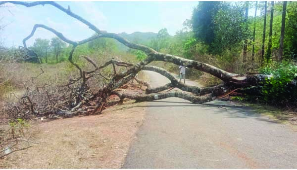 రోడ్డుకు అడ్డంగా నేల కొరిగిన చెట్టు