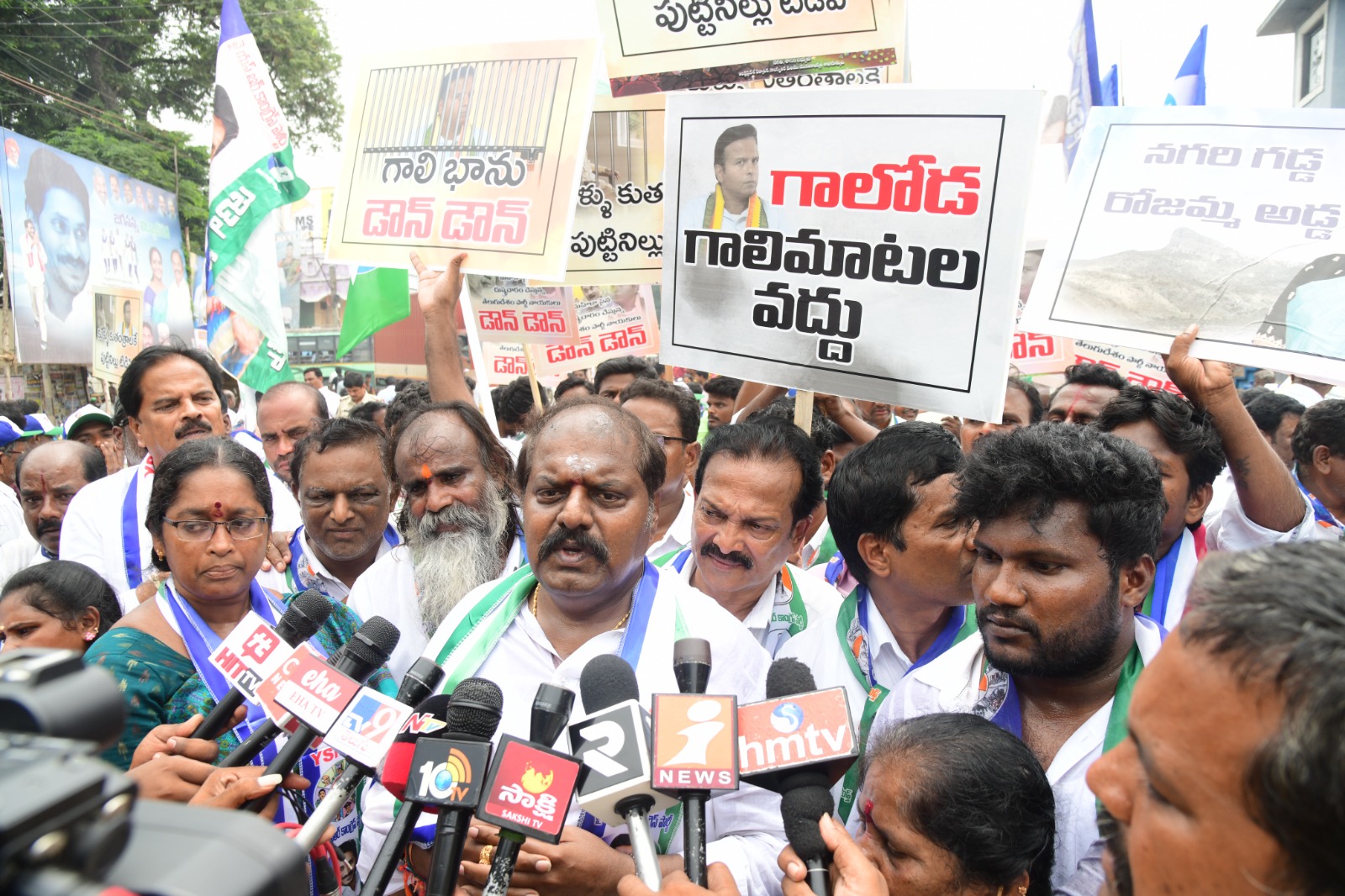 ప్రజాశక్తి-నగరి: ప్రశాంత నగరి నియోజకవర్గంలో రాజకీయక్రీడ ఆరంభమైనట్లే తెలుస్తోంది. రాజకీయం రచ్చకెక్కి ఘర్షణ వాతావరణం నెలకొల్పింది. ఇన్నాళ్లు అధికారిక కార్యక్రమాలతో బిజిబిజిగా గడిపారు మంత్రి ఆర్కే రోజా. పార్టీ కార్యక్రమాలతో కేడర్ను ఉత్తేజింప జేసే పనిలో పడ్డారు టిడిపి అభ్యర్థి భానుప్రకాష్. అంతా భాగానే ఉన్నా.. శుక్రవారం నగిరి పర్యటనలో ఉన్న టిడిపి నేత భానుప్రకాష్పై వైసిపి నాయకులు దాడికి పాల్పడ్డారు. దీంతో అక్కడ ఉద్రిక్త వాతావరణం నెలకొంది. పార్టీ శ్రేణులతో కలసి భానుప్రకాష్ ర్యాలీగా పోలీస్స్టేషన్కు వెళ్లి ఫిర్యాదు చేశారు. అయితే శనివారం వైఎస్సార్సీపీ నాయకులు అన్నీ దొంగ నాటకలే భానువి అంటూ కేవీపీఆర్ పేట నుంచి ఓంశక్తి ఆలయం వరకు భారీ ర్యాలీ నిర్వహించారు. మంత్రి రోజాకు జై కొడుతూ టిడిపి నగరి అభ్యర్థి భానుప్రకాష్పై నిప్పులు చెరిగి విమర్శనాస్రాలు విసిరారు. ఈ సందర్భంగా మంత్రి రోజా సోదరుడు రామ్ప్రసాద్రెడ్డి మీడియాతో మాట్లాడుతూ జగనన్న సురక్ష నిర్వహణ కోసం ఆస్పత్రి వద్ద ఉన్న వైసిపి నాయకులను చూసి పారిపోతూ వాహనాన్ని వెనక్కు తిప్పుకొని లారీని ఢకొీని పరుగులు తీసిన భానుప్రకాష్ మందుమీదున్న నలుగురు పచ్చతమ్ముళ్లు పక్కన రావడంతో మేకపోతు గాంభీర్యాన్ని ప్రదర్శిస్తూ దిగజారుడు రాజకీయాలకు తెరతీశారన్నారు. గత చరిత్ర గురించి ఆయన మాట్లాడుతున్నారని రోజమ్మది ఆయనలా కన్న తండ్రి మరణానికి కారణమైన చరిత్ర కాదన్నారు. కన్న తల్లే ధ్వేషించుకునే చరిత్ర కాదన్నారు. మహిళలను అగౌరవంగా మాట్లాడే నీచ సంస్కృతి ఉన్న చరిత్ర కాదన్నారు. నీ భాగోతమంతా మాకు తెలుసని విమర్శించారు. సినిమాల్లోను, రాజకీయాల్లోను ఎన్నో ఆటుపోట్లు ఎదుర్కొని స్వశక్తితో, పట్టుదలతో కష్టపడి ఎదిగిన రోజమ్మది నిప్పులాంటి చరిత్ర అన్నారు. మరోమారు వ్యక్తిగత దూషణలు చేస్తే దాడి చేశారని ఆడుతున్న నాటకాన్ని నిజం చేస్తామన్నారు. కార్యక్రమంలో పుత్తూరు మున్సిపల్ చైర్మన్ హరి, నగరి, పుత్తూరు, నిండ్ర ఎంపీపీలు భార్గవి, మునివేలు, దీప, మొదలియార్ కార్పొరేషన్ డైరెక్టర్ బాలకష్ణ తదితరులు ఉన్నారు.