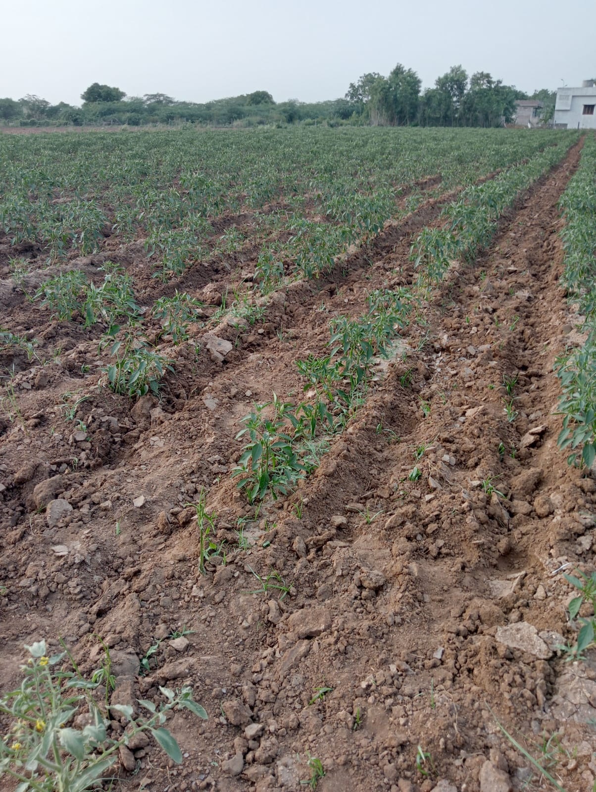 మండలంలోని కొప్పరం, బండివారిపాలెం గ్రామాలలో మెట్ట భూముల్లో బావులు, విద్యుత్ మోటార్ల కింద మిర్చి సాగు చేసిన రైతులు సాగునీరు అందక వేసిన ఫైర్లు ఎండు ముఖం పట్టడంతో ఆందోళన చెందుతున్నారు. ఇప్పటికే ఒక ఎకరానికి రూ.ఒక లక్ష వరకు ఖర్చు చేసి మిర్చి సాగు చేశారు. అయితే వర్షాలు కురవకపోవడంతో బావుల్లో ఉన్న నీరు ఇంకిపోయాయి. విద్యుత్ మోటార్ల కింద సాగుచేసిన రైతులకు 9 గంటలు ఇవ్వాల్సిన త్రీ పేస్ కరెంటు రాకపోవడంతో పొలాలకు నీరు అందక సాగు చేసిన మిర్చి పైరు ఎండు ముఖం పట్టింది. కళ్ళముందే ఎండిపోతున్న మిర్చి పైరును ఎలా కాపాడుకోవాలంటూ రైతులు లబోదిబో అంటున్నారు. గత ఏడాది మిర్చి పంట సాగుదారులకు మంచి లాభాలు రావడంతో ఈ యాడాది ఖరీఫ్లో వర్షాలు రాకపోతాయా అన్న ఆశతో రైతులు మిర్చి సాగు చేశారు. మిర్చి పంటను బతికించుకోవడానికి వాటర్ ట్యాంకుతో నీరు అందించాలంటే ఎకరాకు రూ.40వేలకు పైగా అడుగుతున్నారని రైతులు వాపోతున్నారు. కనీసం విద్యుత్ మోటార్ల ద్వారానైనా 9గంటలు విద్యుత్తును ఇచ్చి తమ మిర్చి పంటను కాపాడాలని రైతులు అధికారులను డిమాండ్ చేస్తున్నారు.