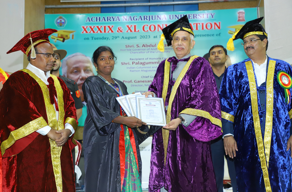 తొలుత వర్సిటీకి చాన్సలర్ హోదాలో గవర్నర్ ఉదయం 11 గంటలకు చేరుకున్నారు. ఆయనకు వీసీ పి.రాజశేఖర్ తదితరులు స్వాగతం పలికారు. అనంతరం జరిగిన కార్యక్రమంలో వర్సిటీ ప్రగతిని వీసీ వివరించారు. అనంతరం పాలగుమ్మి సాయినాథ్కు గౌరవ డాక్టరేట్ను ప్రదానం చేశారు. అనంతరం 30 మందికి పైగా విద్యార్థులు ఛాన్సలర్ నుండి పిహెచ్డిలు, బంగారు పతకాలు, బహుమతులు అందుకున్నారు. కార్యక్రమంలో రెక్టార్ వరప్రసాద్మూర్తి, రిజిస్ట్రార్ బి.కరుణ, వివిధ విభాగాల అధిపతులు, ఎగ్జిక్యూటివ్ కౌన్సిల్, అకడమిక్ సెనేట్ సభ్యులు, ప్రొఫెసర్లు పాల్గొన్నారు.