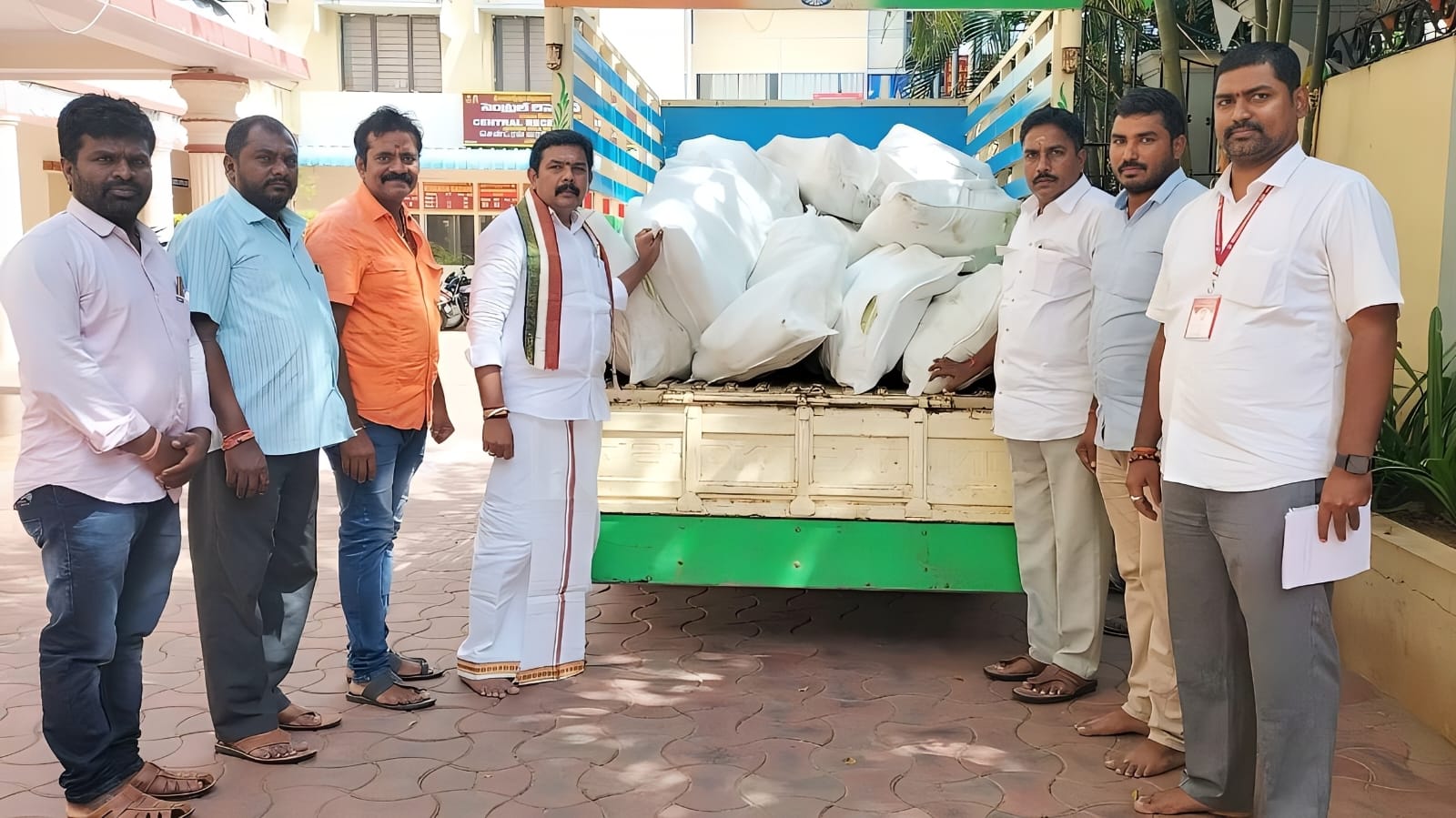 స్థానిక శ్రీకాళహస్తీశ్వరాలయ నిత్యాన్నదాన పథకానికి సహజ సిద్ధంగా పండించిన ఒక టన్ను 110 కిలోల సొరకాయలను తొట్టంబేడు మండలం పూడి గ్రామానికి చెందిన జలగం గుణశేఖర్ మంగళవారం విరాళంగా అందజే:ఇనేజ ముక్కంటి దర్శనార్థం వచ్చే భక్తుల ఆరోగ్యం దష్ట్యా తాము సహజ సిద్ధంగా పండించిన సొరకాయలను వితరణ చేసినట్లు దాతలు చెప్పారు. ఆలయ పాలకమండలి చైర్మన్ అంజూరు శ్రీనివాసులు, సతీష్ మాలిక్, చైర్మన్ సిసి సుదర్శన్ రెడ్డి, పసల కుమారస్వామి, గరికిపాటి రమేష్ తదితరులు పాల్గొన్నారు.