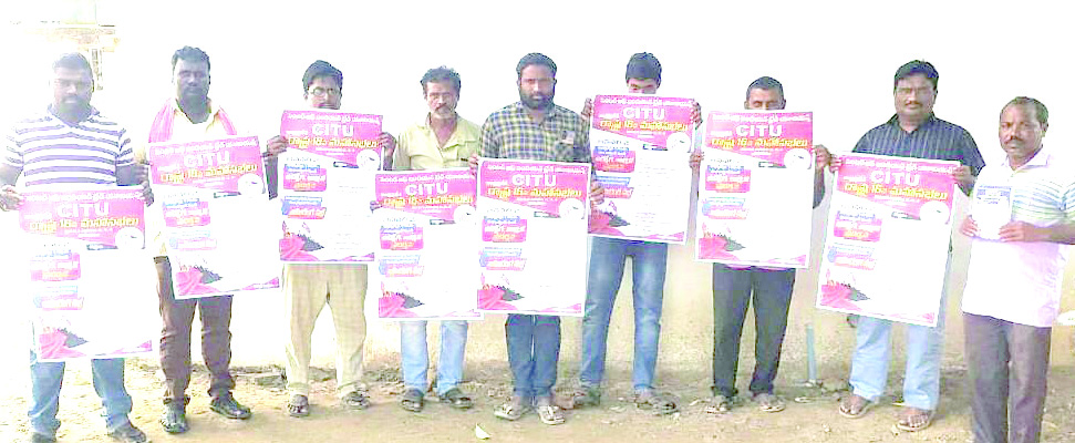 వచ్చేనెల 2, 3, 4 తేదీల్లో భీమవరంలో జరిగే సిఐటియు రాష్ట్ర మహాసభను జయప్రదం చేయాలని సిఐటియు జిల్లా ఉపాధ్యక్షులు నారపల్లి రమణరావు పిలుపునిచ్చారు. ఈ సందర్భంగా మహాసభ వాల్పోస్టర్లను స్థానిక ప్రజాసంఘాల కార్యాలయంలో సోమవారం ఆవిష్కరించారు. ఈ సందర్భంగా రమణరావు మాట్లాడుతూ మహాసభ తొలిరోజు జరిగే భారీ ప్రదర్శన, బహిరంగ సభలో కార్మికులు పెద్దఎత్తున పాల్గొనాలని కోరారు. ఈ కార్యక్రమంలో కంచ వరప్రసాద్, టి.వెంకటేశ్వరరావు, ఎస్.రాంబాబు, బి.సుజాత, వి.సుబ్బారావు. కె.వెంకటరత్నం పాల్గొన్నారు.