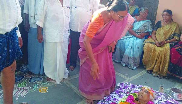 ప్రజాశక్తి-కొల్లూరు: సిపిఎం సానుభూతిపరురాలు, కొల్లూరు మండలం కిష్కిందపాలెం గ్రామానికి చెందిన సిపిఎం సీనియర్ నాయకులు బిఎల్కె ప్రసాద్ తల్లి బోయపాటి వెర్రెమ్మ(100) అనారోగ్యంతో మంగళవారం మతి చెందిన విషయం తెలిసిందే. పలువురు ఆమె మృతదేహాన్ని సందర్శించి నివాళి అర్పించారు. ఆమెకు ఒక కుమారుడు, ఒక కుమార్తె సంతానం. కమ్యూనిస్టు పార్టీ అంటే ఆమె చాలా ఇష్టపడేవారు. వెర్రెమ్మ మతదేహాన్ని సిపిఎం రాష్ట్ర కార్య వర్గ సభ్యురాలు డి రమాదేవి మతదేహాన్ని సందర్శించి పూలమాలవేసి నివాళులర్పించారు. కుటుంబ సభ్యులను పరామర్శించి సానుభూతి తెలిపారు. ఈ కార్యక్రమంలో తెలుగుదేశం పార్టీ మాజీ ఎమ్మెల్యే ముమ్మనేని వెంకటసుబ్బయ్య, సిపిఎం జిల్లా నాయకులు కృష్ణ మోహన్, సిపిఎం జిల్లా నాయకులు సిహెచ్ మణిలాల్, సిపిఎం అమృతలూరు మండల కార్యదర్శి అగస్టీన్, కొల్లూరు మండల కార్యదర్శి తోడేటి సురేష్, జిల్లా సహాయ కార్యదర్శి బొనిగల సుబ్బారావు, జి సుధాకర్, రామస్వామి నాగమల్లేశ్వరరావు, ఎం నాగేశ్వరరావు, ఎం సత్యనారాయణ, సిపిఐ జిల్లా నాయకులు రామాంజనేయులు, సిపిఐ నాయకులు బాలాజీ, టిడిపి మండల అధ్యక్షులు మైనేని మురళీకృష్ణ, సిపిఎం కార్యకర్తలు, గ్రామస్తులు తదితరులు నివాళులర్పించిన వారిలో ఉన్నారు. కిష్కిందపాలెంలోని వారి పొలంలో అంత్యక్రియలు నిర్వహించారు.