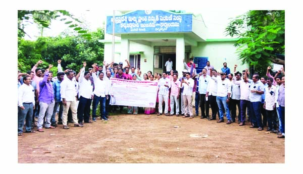 పాలకొండ: స్థానిక డివిజన్ కార్యాలయ ప్రాంగణంలో విద్యుత్ ఉద్యోగుల సమస్యల పరిష్కారానికి చేపట్టిన దశల వారీ ఆందోళనలో భాగంగా మధ్యాహ్నం భోజన విరామ సమయంలో ఉద్యోగులు.జీవరత్నం, రమణమూర్తి ఆధ్వర్యాన జరిగాయి. ఈ కార్యక్రమానికి పాలకొండ డివిజన్ ఇఇ టి.గోపాలకృష్ణమూర్తి, డిఇ మోహన్చక్రవర్తి, ఎఎఒలు, జెఎఒలు, ఎఇలు, జెఇలు, డివిజన్ లోని అన్ని కార్మిక సంఘాల, అసోసియేషన్ల నాయకులు, కార్యవర్గ సభ్యులు పాల్గొన్నారు.