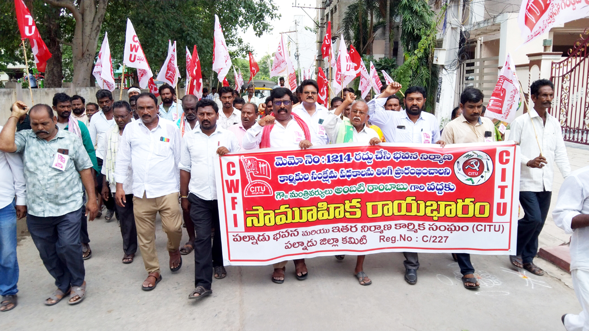ప్రజాశక్తి-సత్తెనపల్లి : భవన నిర్మాణ కార్మికుల సంక్షేమ బోర్డును రెండు నెలల్లో పునరుద్ధరించాలని, నాలుగున్నరేళ్లుగా పెండింగ్లో ఉన్న క్లైమూల బకాయిలను వెంటనే విడుదల చేయాలని, లేకుంటే వచ్చే ఎన్నికలలో భవన నిర్మాణ కార్మికులు జగన్మోహన్రెడ్డిని ఇంటికి పంపిస్తారని భవన నిర్మాణ కార్మిక సంఘం రాష్ట్ర ప్రధాన కార్యదర్శి ఆర్వి.నరసింహారావు అన్నారు. భవన నిర్మాణ కార్మికుల సమస్యలపై మంత్రి అంబటి రాంబాబు వద్దకు శుక్రవారం సామూహిక రాయబారం నిర్వహించగా తొలుత భవన ఇతర నిర్మాణ కార్మిక సంఘం జిల్లా కార్యదర్శి షేక్ సిలార్ మసూద్ అధ్యక్షతన స్థానిక గార్లపాడు సెంటర్లో జరిగిన భవన నిర్మాణ కార్మికుల బహిరంగ సభలో నరసింహారావు మాట్లాడారు. కార్మికులు అనేక సంవత్సరాలుగా కేంద్ర, రాష్ట్ర ప్రభుత్వాలతో పోరాడి భవన నిర్మాణ కార్మికుల సంక్షేమ చట్టాన్ని సాధించుకున్నారని అన్నారు. ఈ చట్టంలోని సంక్షేమ బోర్డు నిధులు గత ప్రభుత్వం ఇతర శాఖలకు మళ్లించితే భవనిర్మాణ కార్మికులు చేసిన ఆందోళనలో జగన్మోహన్రెడ్డి పాల్గొన్నారని చెప్పారు. తాను అధికారంలోకి వస్తే ఇతర రాష్ట్రాల కంటే కూడా మెరుగైన విధంగా సంక్షేమ పథకాలను అమలు చేస్తానన్నారని గుర్తు చేశారు. నిర్మాణదారులు నుండి వస్తువులు చేసిన 1 శాతం డబ్బులు కార్మికుల సంక్షేమ పథకాలకు ఖర్చు చేయవచ్చునని, రాష్ట్ర బడ్జెట్ నుంచి ఒక్క రూపాయి కూడా కేటాయించిన అవసరం లేదని అన్నారు. కరోనా లాక్ డౌన్ కాలంలో రెండేళ్లపాటు కార్మికులకు పనులు లేక ఇబ్బందులు పడుతుంటే వారి సమస్యలను పట్టించుకున్న పాపాన పోలేదన్నారు. సిమెంటు, స్టీలు ఇతర మెటీరియల్ ధరలన్నీ విపరీతంగా పెరగడతో కార్మికులకు పనులు తగ్గి తీవ్ర ఇబ్బందులు పడ్డారని అన్నారు. జిల్లాలో అనేక మంది కార్మికులు ఆకలి మరణాలు సంభవించాయని అన్నారు. పల్నాడు జిల్లాలో మొత్తం 2381 గాను రూ.5 కోట్ల 99 లక్షల 21 వేలను సంక్షేమ బోర్డులో భవన నిర్మాణ కార్మికులకు బకాయి ఉందని, ఈ క్లైమూల పరిష్కారానికి అడ్డంకిగా ఉన్న 1214 మెమోను వెంటనే రద్దుచేసి పెండింగ్ నిధులను వెంటనే విడుదల చేయాలని డిమాండ్ చేశారు. కేంద్ర ప్రభుత్వం తీసుకువచ్చిన గరీబి కళ్యాణ యోజన పథకం అమలు చేయడం కోసం కార్మికుల దగ్గర నుండి ఆధార్ బ్యాంక్ ఎకౌంటు కార్మికులకు గుర్తింపు కార్డులు జిరాక్స్ కాపీలు సేకరించినా ఏ ఒక్క కార్మికునికి కూడా ఒక రూపాయి కూడా ఎకౌంట్లో వేయలేదని ఆవేదన వ్యక్తం చేశారు. కార్మికులందరికీ గుర్తింపు కార్డులు ఇవ్వాలన్నారు.