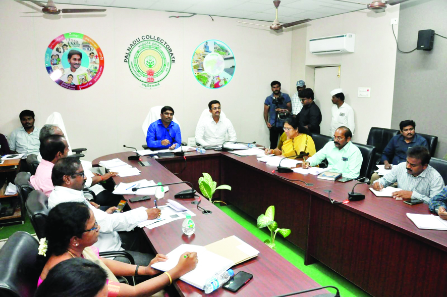 నరసరావుపేట: పల్నాడు జిల్లాలో ప్రభుత్వం అమలు చేస్తున్న సంక్షేమ అభివద్ధి పథకాల వేగాన్ని మరింత పెంచాలని జిల్లా కలెక్టర్ శివ శంకర్ లోతేటి మండల ప్రత్యేక మరియు జిల్లా అధి కారులను ఆదేశించారు. కలెక్టరేట్ లో ఎస్.ఆర్. శంకరన్ వీడియో కాన్ఫరెన్స్ హాలులో సోమవారం సాయంత్రం సంబంధిత శాఖల అధికారులతో వీడియో కాన్ఫరెన్స్ ద్వారా, జిల్లా అధికారులతో అంతర్గత సమీక్ష సమావేశం నిర్వ హించారు. సమావేశంలో ప్రధానంగా మండల ప్రత్యేక అధికారులు, మున్సిపల్ కమిషనర్లతో ప్రభుత్వ పథకాల నిర్వహణపై చర్చించారు. జూన్ 23 నుంచి జులై 23 వరకు జగనన్న సురక్ష కార్యక్రమం ప్రారంభోత్సవం జరగబోతున్న దృష్ట్యా అధికారులంతా భాగస్వాములై పనిచేయాలని కలెక్టర్ ఆదేశించారు. ధ్రువీకరణ పత్రాలు, డాక్యుమెంట్స్ లేక నవరత్నాల పథకాలు ఆగిపోతే, వారి ఇళ్లకు వెళ్లి వారం రోజుల్లో సర్వే పూర్తి చేసి, ప్రత్యేక క్యాంపు ల ద్వారా అర్హులుకు అందేలా చర్యలు తీసుకోవాలని పేర్కొన్నారు. తహశీల్దార్లు, ఎంపీడీవోలు, మున్సిపల్ కమిషనర్లు ప్రత్యేక డ్రైవ్ లో భాగస్వాములు కావాలని సూచించారు.అర్హత కలి గిన ప్రతి ఒక్కరికి ప్రభుత్వ పథకాలు అందేలా చర్యలు తీసు కోవాలని సంబంధిత శాఖల అధికారులను ఆదేశించారు. జూన్ 24 నుంచి జగనన్న సురక్ష పథకం పై అవగాహన కార్యక్రమాలు ప్రతి గ్రామంలో నిర్వహించాలన్నారు.