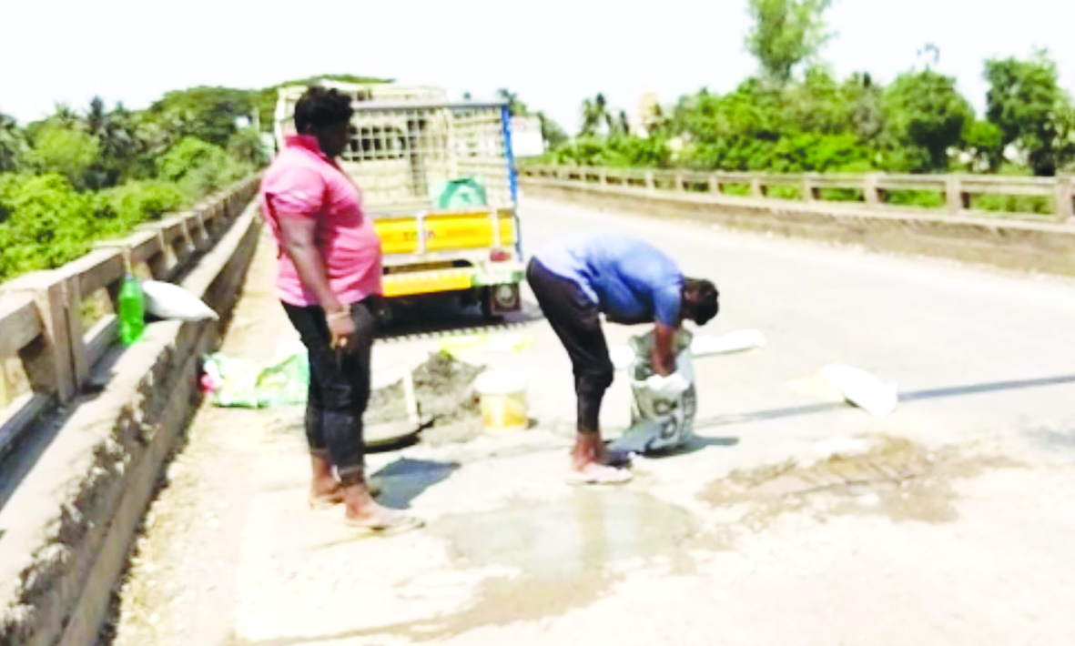 మండలంలోని గుర్వాయిగూడెం మద్ది ఆంజనేయస్వామి ఆలయ సమీపంలో ఎర్రకాలువ వంతెనపై గోతులను సోషల్ వర్కర్స్ బృంద సభ్యులు పూడ్చి ఔదార్యాన్ని చాటుకున్నారు. ఆదివారం కామవరపుకోటకు చెందిన సోషల్ వర్కర్స్ టీమ్ సభ్యులు ఎర్రకాలువ వంతెనపై ఏర్పడిన గోతులను సిమెంట్తో పూడ్చి మరమ్మతు చేశారు. ఈ సందర్భంగా సోషల్ వర్కర్స్ టీమ్ సభ్యులు పండూరి రామసాయి, వీరమళ్ల సౌజన్ సాయి మాట్లాడుతూ నిత్యం అనేక వాహనాలు ప్రయాణించే వంతెనపై ఏర్పడిన గొతుల వల్ల ప్రమాదాలు జరగకుండా నివారించేందుకు స్వచ్ఛందంగా మరమ్మతు చేశామని తెలిపారు. అధికారులు, ప్రజా ప్రతినిధులు జిల్లా కేంద్రం ఏలూరుకు రాకపోకలు సాగిస్తున్న వంతెనపై ఏర్పడిన గోతులను పట్టించుకోకపోవడంతో తాము స్పందించామని తెలిపారు. వంతెనపై ఏర్పడిన గోతుల్లో ఇనుప ఊచలు బయటపడి పలువురికి గాయాలైన సంఘటనలను గుర్తుచేశారు. వంతెనపై మరమ్మతులు చేయడానికి సుమారు రూ.మూడు వేలు ఖర్చు అయిందని తెలిపారు. కామవరపుకోట సోషల్ వర్కర్స్ బృంద సభ్యులు చేసిన మంచి పనిని పలువురు అభినందించారు.