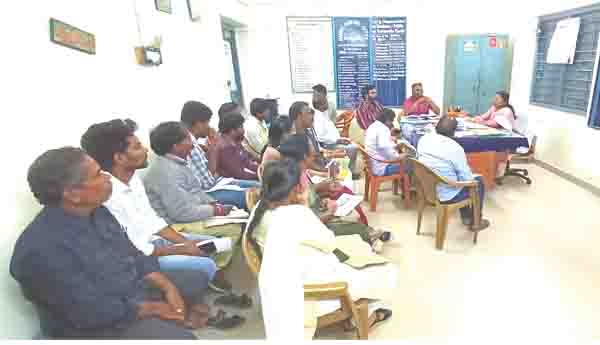 ప్రజాశక్తి-కోటవురట్ల వివిధ సమస్యలపై స్పందన ఫిర్యాదులు ఎప్పటికప్పుడు పరిష్కరించాలని తహశీల్దారు జానకమ్మ సూచించారు. గురువారం గ్రామ రెవెన్యూ అధికారులతో సమావేశం ఏర్పాటు చేశారు. ప్రధానంగా సమగ్ర భూ సర్వే పట్ల రెవెన్యూ సిబ్బంది అప్రమత్తంగా ఉండాలని, పెండింగ్ ఫైల్స్ ఎప్పటికప్పుడు క్లియర్ చేయాలని సూచించారు. మ్యూటిషన్ విషయంలో నిర్లక్ష్యం చేయరాదన్నారు. సిబ్బంది నిరంతరం ప్రజలకు అందుబాటులో ఉండాలని సూచించారు. ఈ కార్యక్రమంలో డిప్యూటీ తహసిల్దార్ సోమశేఖర్, మండల సర్వేయర్ ప్రసాద్, రెవెన్యూ అధికారులు పాల్గొన్నారు.