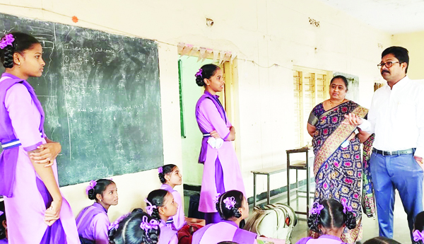విద్యార్థులను ప్రశ్నిస్తున్న ఉప విద్యాశాఖ అధికారి