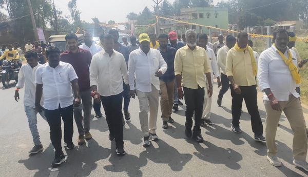 ప్రజాశక్తి - పుత్తూరు టౌన్ : యువత కోసం ప్రత్యేక మ్యానిఫెస్టో తెచ్చి, ఉపాధి, ఉద్యోగాలు కల్పించి వారికి మంచి భవిష్యత్తు అందించేందుకే యువనేత నారా లోకేష్ యువగళం పాదయాత్ర చేస్తున్నారని నగరి నియోజకవర్గ తెలుగుదేశం పార్టీ ఇన్చార్జి గాలి భాను ప్రకాష్ పేర్కొన్నారు. యువత భవిష్యత్తు ను నిర్వీర్వం చేసి, అంధకారం చేసిన వైసీపీ పాలన చరమగీతం పాడడానికి యువత ఐక్యంగా కదలిరావాలి. కుప్పంలో జరుగుతున్న తెలుగుదేశం పార్టీ జాతీయ ప్రధాన కార్యదర్శి నారా లోకేష్ యువగళం పాదయాత్ర 3వ రోజు కలిసి నడిచారు.యువగళం పాదయాత్ర సందర్భంగా లోకేష్ గారు హామీ ఇచ్చిన టిడిపి అధికారంలోకి వచ్చాక యువతకు ప్రత్యేక మ్యానిఫెస్టోతో పాటు, ఉపాధి, ఉద్యోగాల కల్పనలో భాగంగా ఏటా డిఎస్ సి, ప్రభత్వ శాఖల్లో ఖాళీలన్నీ భర్తీ, పరిశ్రమల ఏర్పాటు ద్వారా యువతకు బంగారు భవిష్యత్తు కల్పిస్తామని తెలిపారు. యువత భవిష్యత్తు కోసం నారా లోకేష్ యువగళం పాదయాత్రలో పాల్గొని సంఘీభావం తెలపాలని విజ్ఞప్తి చేసారు. వీరి వెంట చిత్తూరు పార్లమెంటరీ బీసీ సెల్ అధ్యక్చలు షణ్ముగ రెడ్డి, తెలుగు యువత సభ్యులు ఉదయ్, నవీన్ , కబిల్, చైతన్య, వాసు, ముత్తు,శేఖర్ లు పాల్గొన్నారు..