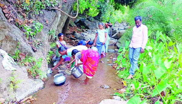 ప్రజాశక్తి-అనంతగిరి:మండలంలోని పెద్దబిడ్డ పంచాయతీ సుద్ధగరు గ్రామంలో తాగునీటి సమస్యతో గిరిజన ప్రజలు తీవ్ర ఇబ్బందులకు గురవుతున్నారు. గ్రామంలోని బోరు బావి, తాగునీటి పైపులైన్ వంటి సౌకర్యాలు లేక గ్రామానికి సమీపంలో ఉన్న కలుషితమైన ఊటనీటిని ఆశ్రయించవలసిన పరిస్థితి ఏర్పడుతుంది. ప్రస్తుతం వేసవి కాలం కావడంతో ఉన్న ఊట గెడ్డ కూడా అట్టడుగుకు ఇంకి పోవడంతో తాగునీటి కోసం మహిళలు మైలుదూరన్న గెడ్డలను ఆశ్రయించాల్సిన పరిస్థితి నెలకొంది. గ్రామంలో నెలకొన్న తాగునీటి సమస్యను పరిష్కరించాలని సంబంధిత ఆర్ డబ్యుఎస్ అధికారులకు అనేకసార్లు కలిసి లిఖిత పూర్వకంగా ఫిర్యాదు చేసామని ఎ.ఎర్రమ్మ, ఎ.అప్పాలమ్మ, సిందుకొడి, కమల, ఎ.లక్ష్మీలు వాపోయారు. పదేళ్ల క్రితం బోరు ఏర్పాటు చేసినప్పటికీ కనీసం చుక్క నీరు కూడా అందలేదని, దీంతో బోరు మూలకు చేరిందన్నారు. సంబంధిత అధికారులు తక్షణమే స్పందించి ప్రస్తుతం తాము ఎక్కడైతే ఊట నీరు సేకరిస్తున్నామో అక్కడి నుండి పైపులు ఏర్పాటు చేసి తాగునీటి సమస్యను పరిష్కరించాలని మహిళలు కోరారు. లేని పక్షాన మండల కేంద్రంలో ఆర్డబ్ల్యుఎస్ కార్యాలయం వద్ద ఆందోళన చేపడతామని హెచ్చరించారు.