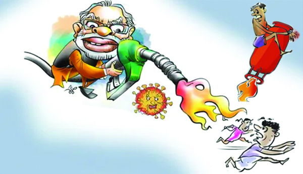 ఎడా పెడా పెరుగుతున్న ఇంధన, చమురు ధరలు చూస్తుంటే మన ప్రధాని మోడీ గారు జి.డి.పి. శరవేగంగా పెరుగుతోందని చెప్పిన మాటలకు అర్ధాలను వెతుక్కోగలిగామనిపిస్తోంది. జి-అంటే గ్యాస్ ధర, డి-అంటే డీజిల్, పి-అంటే పెట్రోల్ ధరలు శరవేగంగా పెరగడం అని ఇప్పుడు అర్ధమయ్యింది. జిడిపి పెరుగుదల అటుంచి, మోడీ గారి జిడిపి ఆంతర్యానికి తగ్గట్టే చమురు ధరలు అమాంతంగా ఆకాశాన్ని తాకుతున్నాయి. పెట్రో ఉత్పత్తుల ధరలు అంతర్జాతీయ మార్కెట్లో హెచ్చుతగ్గులను బట్టి ధరలు దానంతట అదే నిర్ణయించబడతాయని చెబుతోంది బిజెపి ప్రభుత్వం. గత 15 రోజులలో పెట్రోల్ 14 సార్లు పెరిగి 105 నుండి 120కి పెరిగింది. ఇటీవలె వంట గ్యాస్ ధర 14 కేజీల బండ రూ.50 పెరగగా, 19 కేజీల సిలిండర్ ధర రూ.250 కేంద్ర బిజెపి ప్రభుత్వం పెంచింది. దీనివల్ల రవాణా రంగంపైన, వర్తక, వాణిజ్యంపైన, మనం వాడే ప్రతి వస్తువు ధర పెరుగుదలకు ఊతం ఇచ్చారు. ఎక్కడో ఉక్రెయిన్లో యుద్ధం జరుగుతుంటే మన ఊళ్లో వంట నూనెల ధర పెరిగిపోవడం ఏమిటని అనుకున్నా, వీటిని అదుపు చేయాల్సిన ప్రభుత్వాలు ఆ పని చేయడంలో విఫలమయ్యాయి. పెట్రోలియం ఉత్పత్తుల వాస్తవ ధర కంటే కేంద్ర, రాష్ట్ర ప్రభుత్వాల పన్నులే ఎక్కువ. మోడీ గారు అధికారంలోకి వచ్చిన ఈ 8 ఏళ్లలో పెట్రోల్ ఉత్పత్తుల ద్వారా పన్నుల రూపంలో ప్రజల నుండి చేసిన వసూళ్లు అక్షరాలా రూ. 26 లక్షల కోట్లు. ఇంత పెద్ద మొత్తంలో ఒక్క పెట్రోల్ ఉత్పత్తుల పైనే ప్రజలపై భారాలు మోపిన బిజెపి ప్రభుత్వం, దేశీయ పెట్టుబడిదారులకు దాదాపు ఈ కాలంలో రూ.11 లక్షల కోట్ల రుణాలను మాఫీ చేసింది. దీన్నిబట్టే మోడీజీ సేవలు ప్రజల కోసమా పెట్టుబడిదారుల కోసమా అనేది అర్ధమౌతోంది. కానీ మరోవైపు నేను ఏది చేసినా దేశం కోసం, ప్రజల కోసం అని బాజా వాయించుకుంటుంటారు.