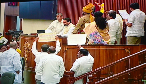 - పోడియంపై బైఠాయించిన టిడిపి సభ్యులు