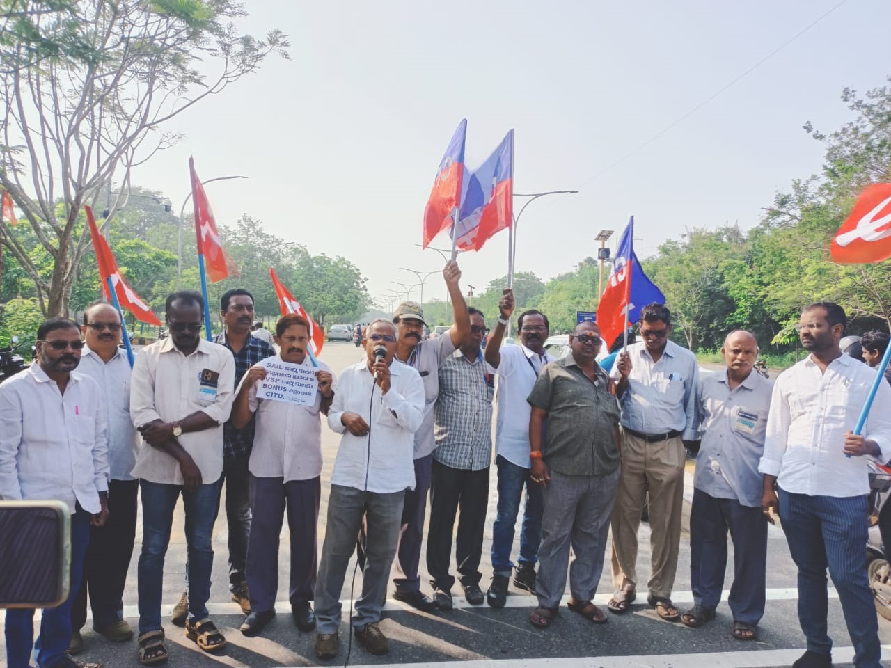ఈ సందర్భంగా రామస్వామి మాట్లాడుతూ, స్టీల్ గుర్తింపు యూనియన్ అసమర్థ నిర్ణయాల వల్ల సెయిల్ కార్మికులు తీసుకుంటున్న బోనస్ను ు విశాఖ స్టీల్ప్లాంట్ కార్మికులకు పొందలేకున్నారన్నారు. రూ. 3495 కోట్ల నష్టాల్లో ఉన్నప్పటికీ సెయిల్ కార్మికుల వలె పూర్తి బోనస్ చెల్లించిన ఘనత సిఐటియు మిత్రపక్షాలకు ఉందని ఆయన గుర్తు చేశారు. నేడు రూ.650 కోట్ల లాభాలు ఉన్నప్పటికీ, పూర్తి బోనస్ చెల్లించేలా యాజమాన్యంపై ఒత్తిడి చేయడంలో గుర్తింపు యూనియన్ వైఫల్యం కనబడుతోందన్నారు. బోనస్ విషయంలో విఫలమైతే, దాని ప్రభావం మున్ముందు నూతన వేతన ఒప్పంద సమయంలో తీవ్ర ప్రభావం చూపుతుందన్న విషయాన్ని గుర్తెరిగి, బేషజాలకు పోకుండా ఐక్యకార్యాచరణతో యాజమాన్యంపై పోరాడాల్సిన అవసరముందని పిలుపునిచ్చారు. కార్యక్రమంలో స్టీల్ సిఐటియు ప్రధాన కార్యదర్శి వైటి దాస్, సిఐటియు మిత్రపక్షాల నాయకులు సిహెచ్ సన్యాసిరావు, కర్ర ప్రకాష్, సిఐటియు నాయకులు పి శ్రీనివాసరాజు, టివికె.రాజు, ఎంఎస్వి ఉమామహేశ్వరరావు, విడివి పూర్ణచంద్రరావు, లోకేష్, వివిధ విభాగాల అధ్యక్ష కార్యదర్శులు, అధిక సంఖ్యలో కార్మికులు పాల్గొన్నారు.