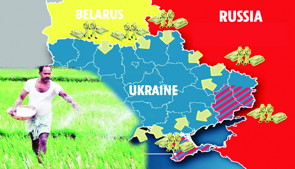 ఉక్రెయిన్పై రష్యా సైనిక చర్య ఫిబ్రవరి 24న ప్రారంభమైంది. దేశానికి అన్నం పెట్టే రైతన్నకు ఈ యుద్ధం ఎలాంటి ఇబ్బందులను కలిగిస్తుందో చూద్దాం. భారత్లో తీవ్ర కొరత మధ్య ఎరువుల ధరలు భారీగా పెరుగుతాయని అంతర్జాతీయ స్టాక్ మార్కెట్ సూచీల కదలికల మీద విశ్లేషణలు అందించే ఎస్ అండ్ పి (స్టాండర్డ్ అండ్ పూర్) సంస్ధ మార్చి 30వ తేదీన పేర్కొన్నది.