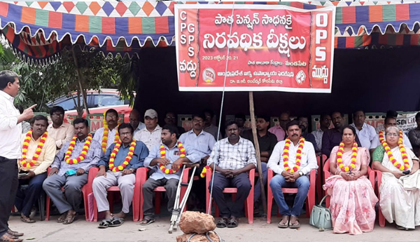 ప్రజాశక్తి-మండపేట : సిపిఎస్, జిపిఎస్ విధానాన్ని రద్దుపరిచి పాత పెన్షన్ పునరుద్ధరించాలని కోరుతూ యుటిఎఫ్ ఆధ్వర్యంలో పాత తాలూకా కేంద్రాల వద్ద నిరవధిక నిరాహార దీక్ష శుక్రవారం ప్రారంభించింది. ఈ సందర్భంగా జిల్లా సహాధ్యక్షులు సురేంద్ర మాట్లాడుతూ ఈనెల 18వ తేదీన రాష్ట్ర కేంద్రమైన విజయవాడలోనూ 19వ తేదీన అన్ని జిల్లాల కలెక్టరేట్ కార్యాలయాల వద్ద ప్రారంభించినటువంటి నిరవధిక నిరాహార దీక్షకు మద్దతు తెలుపుతూ శుక్రవారం అన్ని పాత తాలూకా కేంద్రాల వద్ద వారికి మద్దతుగా నిరవధిక నిరాహార దీక్షను చేపట్టడం జరిగిందన్నారు. పాత పెన్షన్ పునరుద్ధరణ మాత్రమే తమకు ప్రత్యామ్నాయమని ఇతర ఏ రకమైనటువంటి పెన్షన్ విధానాన్ని ఆమోదింలేమన్నారు. పాత పెన్షన్ విధానాన్ని పునరుద్ధరిస్తామని ఎవరైతే హామీ ఇస్తారో వారికి మాత్రమే మేము ఓటు చేయవలసినదిగా కూడా తీర్మానించడం జరిగిందని రాష్ట్ర అధ్యక్షులు ఎన్. వెంకటేశ్వర్లు మాటను ఉదాహరించారు. జిల్లా ఆడిట్ కమిటీ సభ్యులు కే. గోపాలకృష్ణారెడ్డి అధ్యక్షులు వహించిన కార్యక్రమంలో జిల్లా కార్యదర్శి జి రాజు, మండపేట, మండల పట్టణ, కపిలేశ్వరపురం నాయకులు ఎం.త్రినాథ్, బి రామచంద్రరెడ్డి, కే సత్తిబాబు,శ్రీనివాస్, రిటైర్డ్ ఉపాధ్యాయ ఉపాధ్యాయులు గంటి వీర్రాజు, సిహెచ్ శ్రీహరిరావు, వి దొరకయ్య తదితర ఉపాధ్యాయులు పాల్గొన్నారు.