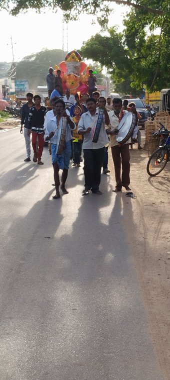 ప్రత్యేకంగా అలంకరించిన మండపాల్లో పూజలు అందుకునేందుకు గణనాధుని విగ్రహాలు వాహనాలపై గ్రామాలకు తరలి వెళుతున్నాయి. మండలంలోని వివిధ గ్రామాల నుంచి ఉత్సవాల కమిటీ నిర్వాహకులు వివిధ వాహనాల్లో ముదినేపల్లి చేరుకుని విగ్రహాలను కొనుగోలు చేస్తున్నారు. గణేష్ విగ్రహాలను వివిధ వాహనాల్లో ఎక్కించి ఊరేగింపుగా తమ గ్రామాలకు తరలి వెళుతున్నారు. ఈ సందర్భంగా ఉత్సవ కమిటీ నిర్వాహకులు డప్పు వాయిద్యాలతో, యువకుల నృత్యాలు, కేరింతల నడుమ ఊరేగింపుగా విగ్రహాలను గ్రామాలకు తీసుకు వెళుతున్నారు. దీంతో ముదినేపల్లి సెంటర్ కోలాహలంగా మారింది. అదేవిధంగా వైకూడలి వద్ద ఉత్సవపూజా సామాగ్రిని వ్యాపారులు జోరుగా విక్రయిస్తున్నారు. పెద్ద సంఖ్యలో రోడ్డు మార్జిన్లలో దుకాణాలు ఏర్పాటు చేసి పూజా సామాగ్రిని విక్రయిస్తుండడంతో పెద్ద ఎత్తున ప్రజలు వచ్చి పూజా సామాగ్రిని కొనుగోలు చేసి, తమ వెంట తీసుకెళుతున్నారు. వివిధ గ్రామాల నుంచి యువతీ, యువకులు, చిన్నలు, పెద్దలు, ముదినేపల్లి సెంటర్ చేరుకుని విగ్రహాలను, పూజా సామాగ్రిని కొనుగోలు చేసి తీసుకెళ్లడంతో ముదినేపల్లి సెంటర్ సందడిగా మారింది.