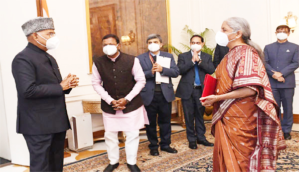 న్యూఢిల్లీ : 2022-23 వార్షిక బడ్జెట్ను కేంద్ర ఆర్థిక మంత్రి నిర్మలా సీతారామన్ నేడు పార్లమెంట్లో ప్రవేశపెట్టనున్నారు. మంగళవారం ఉదయం 11 గంటలకు లోక్సభలో నిర్మలమ్మ పద్దును పార్లమెంట్ ముందుంచనున్నారు. ఈ నేపథ్యంలో బడ్జెట్ 'ట్యాబ్'తో రాష్ట్రపతిని కలిశారు. ఈ ఉదయం తన నివాసం నుంచి నార్త్బ్లాక్లోని ఆర్థికశాఖ కార్యాలయానికి నిర్మలమ్మ చేరుకున్నారు. అక్కడ తన బృందంతో సమావేశమైన అనంతరం.. బడ్జెట్ ట్యాబ్తో నేరుగా రాష్ట్రపతి భవన్ చేరుకున్నారు. ప్రొటోకాల్ ప్రకారం దేశ ప్రథమపౌరుడు రాష్ట్రపతి రామ్నాథ్ కోవింద్ను కలిసి బడ్జెట్ గురించి వివరించారు. అనంతరం అక్కడి నుంచి నిర్మలమ్మ బృందం పార్లమెంట్కు చేరుకుంది.