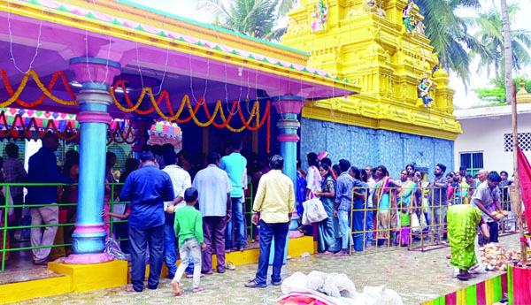 గొలుగొండ : మండలంలో లింగంపేటలోని నూకాంబిక దేవాలయంకు వందలాది సంఖ్యలో భక్తులు తరలి వచ్చారు. భక్తుల సౌకర్యార్ధం దేవాదాయశాఖ ఆధ్వర్యంలో తలనీలాలు సమర్పించడానికి, తాగునీటికి, ప్రసాదాలకు ప్రత్యేక కౌంటర్లు ఏర్పాటు చేశారు. ఉత్సవ కమిటీ ఆధ్వర్యంలో దేవాలయం నుండి ప్రధాన రహదారి వరకు ట్రస్ట్ బోర్డు చైర్మన్ ఆధ్వర్యంలో భారీ విద్యుత్ దీపాలంకరణ చేశారు. ఆలయ ప్రాంగణంలో పలు దుకాణాలను ఏర్పాటు చేయడంతో భక్తులు భారీగా కొనుగోలు చేశారు.