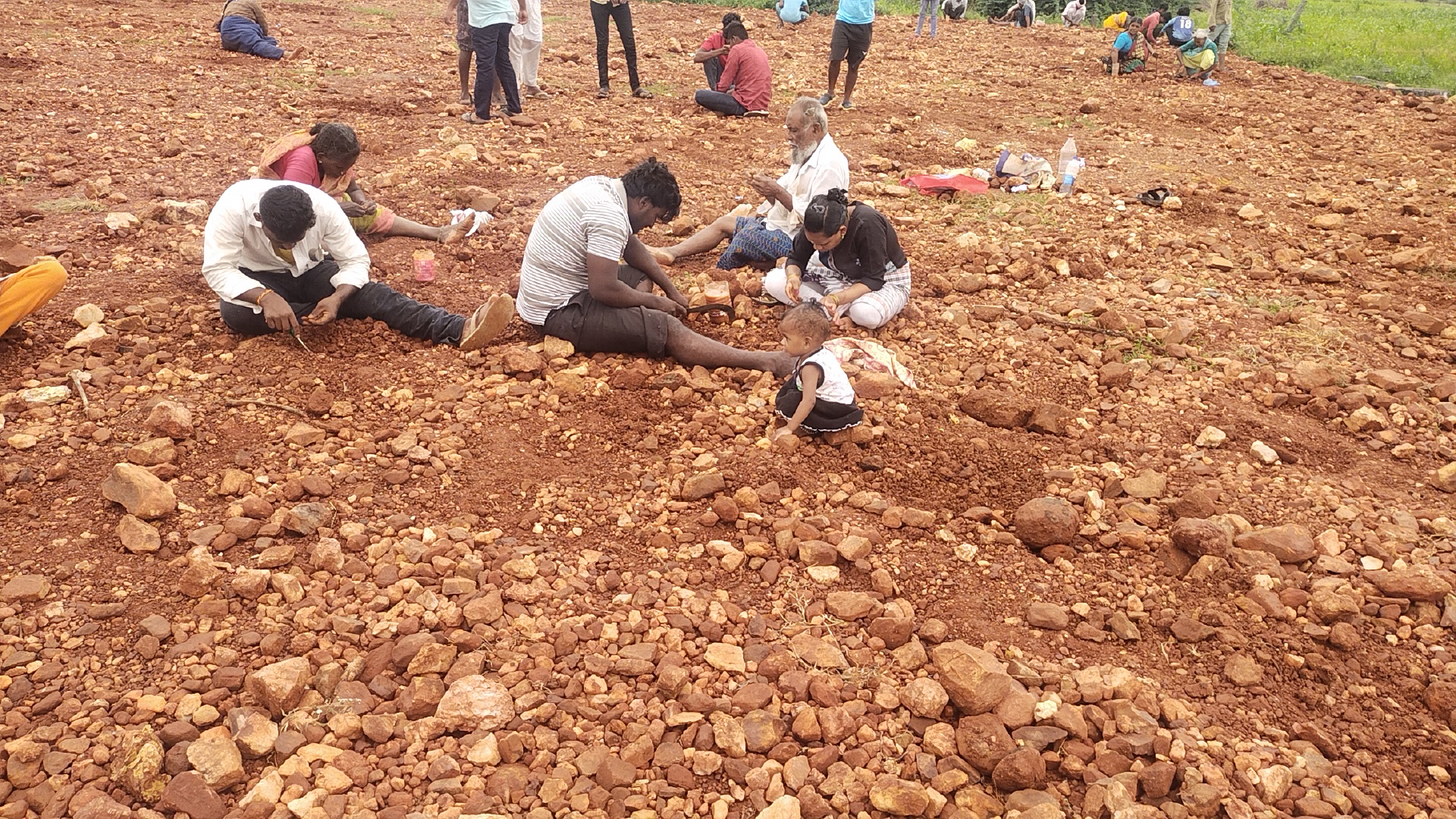 ప్రజాశక్తి - సత్తెనపల్లి రూరల్ : సత్తెనపల్లి బసవమ్మ వాగు సమీపంలో వజ్రాలు దొరుకుతున్నాయనే వదంతులతో పలు ప్రాంతాల నుండి జనం కుటుంబ సమేతంగా వచ్చి వెదుకులాడుతున్నారు. పిల్లలను పాఠశాలలు మాన్పించి మరీ వజ్రాలు వెతికేందుకు తీసుకొచ్చేవారు కొందరైతే చట్టి బిడ్డలను చంకనేసుకుని వచ్చేవారు మరికొందరు. వీరంతా భోజనాల క్యారేజీలు తెచ్చుకుని మరీ ఉదయం నుండి సాయంత్రం వరకూ వజ్రాల వేటలో నిమగమవుతున్నారు. వినుకొండ, చిలకలూరిపేట, పెదకూరపాడు, పిడుగురాళ్ల, మాచర్ల తదితర ప్రాంతల నుండి తండోపతండాలుగా వస్తున్నారు. సత్తెనపల్లి ప్రాంతంలో ఎక్కడ ఎర్రమట్టి కనపడినా అక్కడ వజ్రాల కోసం వెదుకుతున్నారు. కొడవళ్లు, ఇనుప కడ్డీలతో తవ్వుతూ అంగుళం అంగుళం గాలిస్తున్నారు. మరోవైపు రోజురోజుకూ జనం పెరుగుతుండడంతో ఆ ప్రాంతమంతా తిరునాళ్లను తలపిస్తోంది. వీధి విక్రేతలు సైతం వ్యాపారం కోసం వస్తున్నారు. రహదార్ల వెంట ఐస్ క్రిమ్, సోడాబండ్లు వెలిశాయి.