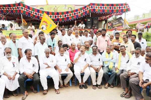 టిడిపి అధినేత చంద్రబాబు అరెస్టుకు నిరసనగా బాబుకు తోడు మేము సైతం అనే నినాదంతో వేమూరు ఎన్టీఆర్ పుర వేదిక వద్ద టిడిపి కార్యకర్తలు నిరాహార దీక్ష బుధవారం నిర్వహించారు. నియోజకవర్గంలోని ఐదు మండలాల నుండి పెద్ద ఎత్తున నాయకులు, కార్యకర్తలు పాల్గొన్నారు. ఈ సందర్భంగా మాజీ మంత్రి, టిడిపి పోలిట్ బ్యూరో సభ్యులు నక్క ఆనందబాబు మాట్లాడుతూ రాష్ట్రంలో రాక్షస పాలన కొనసాగుతుందని అన్నారు. ఎలాంటి అవినీతి మచ్చలేని చంద్రబాబును దురుద్దేశపూర్వకంగా అక్రమ కేసులు బనాయించి జైలుకు పంపారన్నారు. ఎన్నికలు సమీపిస్తున్న కొద్దీ జగన్మోహన్ రెడ్డిలో ఓటమి భయం పట్టుకుందని అన్నారు. ఆ భయంతోనే చంద్రబాబును అరెస్ట్ చేయించారన్నారు. చంద్రబాబుకు మద్దతుగా నిలిచిన కార్యకర్తలను కూడా పోలీసులు ఎక్కడికి అక్కడ అరెస్టు చేయడం హేయమైన చర్యని అన్నారు. మరో ఆరు నెలల్లో టిడిపి అధికారం చేపడుతుందని అన్నారు. వైసీపీ నాయకులకు సహకరించే అధికారులు మూల్యం చెల్లించక తప్పదని హెచ్చరించారు. కార్యక్రమంలో టిడిపి నాయకులు మైనేని మురళీకృష్ణ, జొన్నలగడ్డ విజయబాబు, వాకా శేషుబాబు, వేములపల్లి జగన్నాధరావు, బట్టు మల్లికార్జునరావు, చుండూరు, అమర్తలూరు, కొల్లూరు, భట్టిప్రోలు, వేమూరు మండలాల నాయకులు కార్యకర్తలు పాల్గొన్నారు.