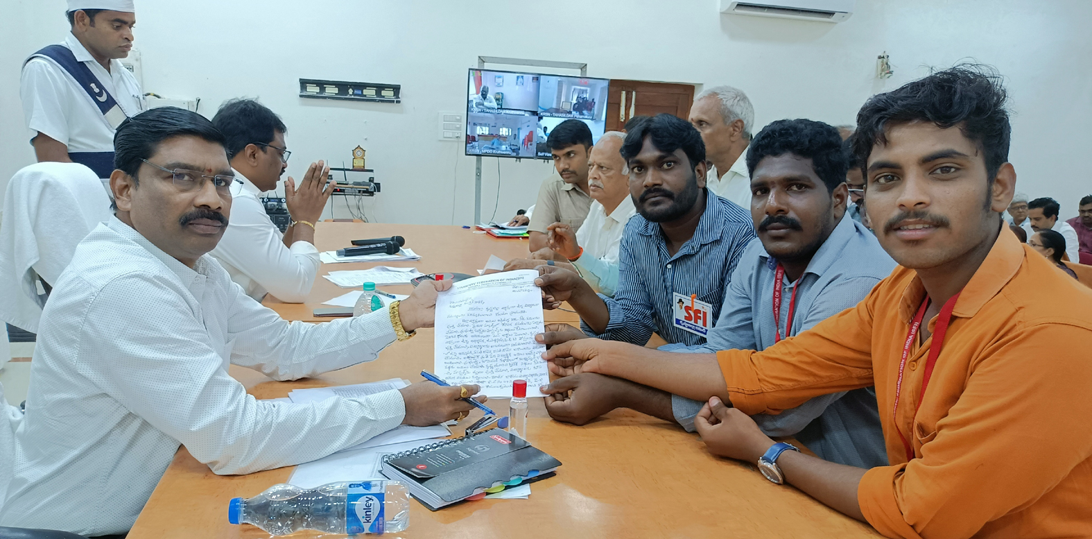 ప్రజాశక్తి కలక్టరేట్ (కృష్ణా) : కృష్ణాజిల్లా వ్యాప్తంగా ఉన్న విద్యా రంగ సమస్యలను పరిష్కరించాలని కోరుతూ ఎస్ఎఫ్ఐ ఆధ్వర్యంలో సోమవారం జిల్లా రెవెన్యూ అధికారి పి. వెంకటరమణకు వినతిపత్రం అంద జేశారు. జిల్లావ్యాప్తంగా విద్యారంగంలో నెలకొన్న అనేక సమస్యల్ని అధికారులకు వివరించారు. నాడు నేడు పనులను త్వరగా పూర్తిచేసి సొంత భవనాల కేటాయిం చాలని . ప్రభుత్వ జూనియర్ కళాశాలలో మధ్యాహ్న భోజన పథకాన్ని అమలుపరచాలని ప్రభుత్వ సంక్షేమ హాస్టల్ సొంతభవనాలు కేటాయించాలని పెరిగిన ధరలకు అనుగుణంగా మెస్ చార్జీలు 3 వేలకు పెంచాలని డిమాండ్ చేశారు.అలాగే పెండింగ్లో ఉన్న కాస్మోటిక్ చార్జీలు వెంటనే విడుదల చేయాలన్నారు. అదేవిధంగా పెండింగ్లో ఉన్న అమ్మఒడి వసతి దీవిన, విద్యాధీన అందించాలన్నారు. వైద్య విద్య పేద బడుగు బలహీన వర్గాలకు అందే విధంగా ప్రభుత్వం చర్యలు తీసుకోవాలన్నారు. వైద్య విద్య లో తీసుకొచ్చిన జీవో నెంబర్ 107, 108,లను రద్దు చేయాలని అదేవిధంగా జీవో నెంబర్ 77 రద్దుచేసి పీజీ విద్యార్థులకు ఫీజు రీయిమెంట్స్ కల్పించాలని డిమాండ్ చేశారు. వినతిపత్రం ఇచ్చిన వారిలో ఎస్ఎఫ్ఐ జిల్లా కార్యదర్శి ఎస్ సమరం , జిల్లా ఉపాధ్యక్షులు వి.కీర్తి జిల్లా కమిటీ సభ్యుల సమీర్ పలువురు విద్యార్థులు పాల్గొన్నారు.
