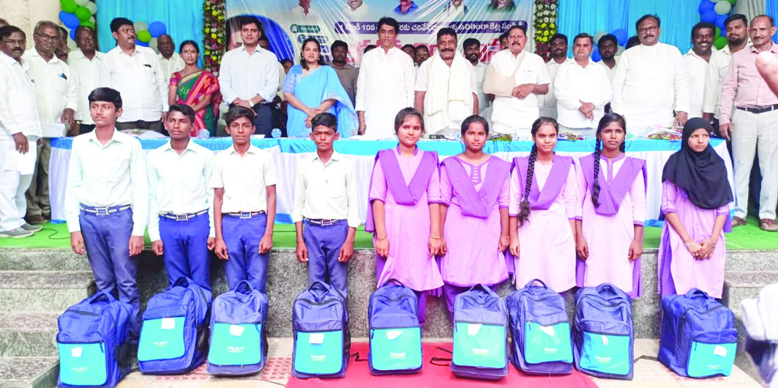 విద్యతోనే పురోగతి సాధ్యమని, రాష్ట్రంలో ప్రాథమిక విద్యను బలోపేతం చేసే దిశగా ముఖ్యమంత్రి జగన్మోహన్ రెడ్డి ప్రయోజిత పథకాలు అమలు చేస్తున్నారని రాష్ట్ర ఆర్థిక శాఖ మంత్రి బుగ్గన రాజేంద్రనాథ్ రెడ్డి, ఎమ్మెల్యే వై.సాయి ప్రసాద్ రెడ్డి తెలిపారు. సోమవారం ఆదోని పట్టణంలోని మున్సిపల్ హైస్కూల్లో విద్యార్థులకు జగనన్న విద్యా కానుక కిట్లను పంపిణీ చేశారు. ప్రధానోపాధ్యాయులు మల్లికార్జున అధ్యక్షత వహించారు. అంతకుముందు మున్సిపల్ ఛైర్మన్ శాంత జ్యోతి ప్రజ్వలన చేశారు. మున్సిపల్ కమిషనర్ రఘునాథ్ రెడ్డి వారికి స్వాగతం పలికారు. ఈ సందర్భంగా మంత్రి బుగ్గన మాట్లాడారు. జగనన్న విద్యాకానుక విద్యార్థులకు, తల్లిదండ్రులకు వరమని తెలిపారు. తన చిన్నతనంలో కొత్త బట్టలు, షూస్ లేకపోవడం లోటుగా అనిపించేదని చెప్పారు. చిన్నతనంలో సహజంగా ఉండే సూక్ష్మమైన విషయాన్ని గుర్తించిన ముఖ్యమంత్రి జగన్మోహన్రెడ్డి లేదనే బాధ లేకుండా విద్యార్థులందరికీ సమానంగా అన్నీ ఉండాలనే జగనన్న విద్యాకానుక అందిస్తున్నారని తెలిపారు. నాడు-నేడు ద్వారా పాఠశాలల రూపురేఖలు మారాయన్నారు. కలెక్టర్ జి.సృజన, ఎంపీ సంజీవ్ కుమార్, జడ్పి ఛైర్మన్ ఎర్రబోతుల పాపిరెడ్డి, ఎమ్మెల్సీ మధుసూదన్, మాట్లాడారు. మార్కెట్ యార్డు ఛైర్మన్ మజార్ అహ్మద్, వైస్ ఛైర్మన్ తిమ్మప్ప, మున్సిపల్ వైస్ ఛైర్మన్ నరసింహులు, సబ్ కలెక్టర్ అభిషేక్ కుమార్, డిఇఒ రంగారెడ్డి, ఎపిఒ శ్రీనివాసులు, ఎంఇఒ శివరాం, వైసిపి నాయకులు జయమనోజ్ రెడ్డి, వక్ఫ్ బోర్డు ఛైర్మన్ నియాజ్ అహ్మద్, మార్కెట్ యార్డ్ మాజీ ఛైర్మన్ మహబూబ్బాషా, జమీల్ షఫీ అహ్మద్, ఉపాధ్యాయులు నాగరాజ్, ప్రహ్లాద, రవి, సిఐలు విక్రమ్ సింహ, పార్థసారథి, ఎస్ఐ చంద్ర ఉన్నారు.
