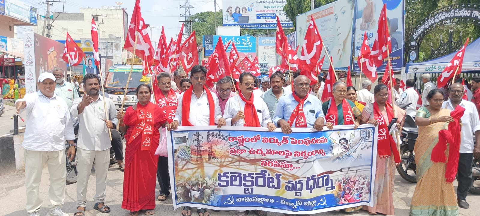 పల్నాడు జిల్లా కేంద్రం నరసరావుపేటలో నిరసన ర్యాలీ చేపట్టారు. స్థానిక ధర్నా చౌక్ వద్ద నుండి కలెక్టరేట్ వరకూ ర్యాలీ సాగింది. కార్యక్రమానికి సిపిఎం జిల్లా కార్యదర్శివర్గ సభ్యులు ఏపూరి గోపాలరావు అధ్యక్షత వహించారు. సిపిఎం పల్నాడు జిల్లా కార్యదర్శి గుంటూరు విజయకుమార్ మాట్లాడుతూ అధికారంలోకి రాకముందు గత ప్రభుత్వంపై బాదుడే బాదుడు అంటూ విమర్శలు చేసిన జగన్మోహన్రెడ్డి సిఎం అయ్యాక ఈ నాలుగున్నరేళ్లలో అనేకసార్లు విద్యుత్ ఛార్జీలు పెంచి ప్రజలపై మోయలేని భారాలు వేశారని మండిపడ్డారు. గతంలో వినియోగించిన విద్యుత్కు సర్దుబాటు చార్జీల పేరుతో ఇప్పుడు వసూలు చేస్తున్నారని, అసలు బిల్లు కంటే అదనపు బిల్లులే అధికంగా ఉంటున్నాయని విమర్శించారు. కేంద్ర, రాష్ట్ర ప్రభుత్వాలు రెండూ ప్రజా సమస్యలను విస్మరించి అదనపు భారాలు వేయడం అసమర్థ పాలనకు నిదర్శనమన్నారు. కేంద్రంలోని బిజెపి చెప్పినట్లు రాష్ట్రంలోని వైసిపి ప్రభుత్వం తూచ తప్పకుండా అమలు చేస్తోందని, విద్యుత్ భారాలు దాని ఫలితమేనని అన్నారు. సిపిఐ జిల్లా సహాయ కార్యదర్శి హుస్సేన్, ఎంసిపిఐ (యు) జిల్లా ప్రధాన కార్యదర్శి రెడ్బాష మాట్లాడుతూ కార్పొరేట్లకు లాభాలు చేకూర్చేందుకు స్మార్ట్ మీటర్లు తెస్తున్నారని అన్నారు. సమ్యలపై పోరాడుతున్న వారిపై నిర్బంధం ప్రయోగిస్తున్నారని, నిరసన హక్కులను హరిస్తున్నారని, ఈ విధానాలను మార్చుకోకుంటే కేంద్ర, రాష్ట్ర ప్రభుత్వాలకు ప్రజలు తగిన బుద్ధి చెబుతారని హెచ్చరించారు. అనంతరం సిపిఐ జిల్లా సహాయ కార్యదర్శి కె.రాంబాబు, సిపిఎం జిల్లా కార్యదర్శివర్గ సభ్యులు వై.రాధాకృష్ణ, ఎ.లకీëశ్వరరెడ్డి, ఎస్.ఆంజనేయులు నాయక్, జి.రవిబాబు, మాట్లాడారు. గతంలో రూ.500లోపున్న బిల్లులు ఇప్పుడు రూ.1500 వరకూ వస్తున్నాయని, బిల్లులను చూస్తేనే షాక్ కోడుతోందని అన్నారు. వినియోగించుకున్న దానికి మించి వేస్తున్న బిల్లులను ఆపేయాలని కోరారు. ఇప్పటికే నిత్యావసరాల ధలు ఆకాశానికి అంటుతున్నాయని, సామాన్యులపై విద్యుత్ ఛార్జీలు భారమై చెల్లించలేకపోతున్నారని చెప్పారు. కూలీనాలి చేసుకుని బతికేవారు తమకొచ్చే కొద్ది మొత్తాలను విద్యుత్, గ్యాస్కే ఖర్చు చేస్తే వారి జీవనం ఎలా గడవాలని ప్రశ్నించారు. ప్రజల రక్తాన్ని పీల్చేలా ప్రభుత్వాల భారాలున్నాయని, వీటిని వెంటనే నిలిపేయాలని డిమాండ్ చేశారు. వ్యవసాయ మోటార్లకు మీటర్లు పెట్టడం అంటే రైతులకు ఇచ్చే ఉచిత విద్యుత్కు ఎగనామం పెట్టడానికేనన్నారు. బిల్లును రైతులకు నగదు బదిలీ చేస్తామని చెబుతున్నా అది నమ్మసక్యం కాదని, గ్యాస్ సబ్సిడీ ఇందుకు నిదర్శనమని అన్నారు. అనంతరం జిల్లా కలెక్టర్ కార్యాలయంలో జిల్లా రెవెన్యూ అధికారి కె.వినాయకంకు వినతిపత్రం అందజేశారు. సిపిఎం నా