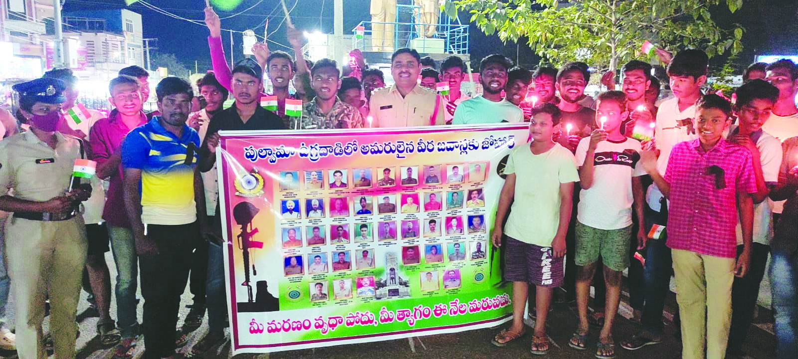 పుల్వామాలో వీరమరణం పొందిన జవాన్లకు షేర్ మహమ్మద్ పేట క్రాస్ రోడ్ సాయిబాబా టెంపుల్ సమీపంలో మంగళవారం నివాళులర్పించారు. ఈ కార్యక్రమంలో అన్నెపాగ కిషోర్బాబు, సీనియర్ టిడిపి నాయకులు దామాల ప్రసాద్, సతీష్ సాయి శివ పాల్గొన్నారు. ప్రజాశక్తి-పెనుగంచిప్రోలు: పుల్వామా దాడిలో వీరమరణం పొందిన అమర జవాన్లకు గ్రామ సర్పంచ్ పద్మ కుమారి ఆధ్వర్యంలో నివాళులు అర్పించారు. ఈ కార్యక్రమంలో కార్యదర్శి శ్యామ్ కుమార్, సచివాలయం సిబ్బంది పాల్గొన్నారు. ప్రజాశక్తి-గంపలగూడెం: స్థానిక గాంధీ సెంటర్ నుండి తోటమూల వరకు గంపలగూడెం ఎస్ఐ వి.సతీష్కుమార్ ఆధ్వర్యంలో ర్యాలీ నిర్వహించారు.