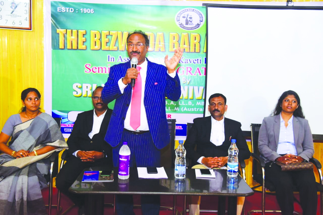 ప్రజాశక్తి-విజయవాడ అర్బన్: విదేశాలకు వెళ్లే ప్రజలు మోసాలకు గురి కాకుండా అప్రమత్తంగా ఉండాలని ప్రముఖ అంతర్జాతీయ న్యాయవాది కావేటి శ్రీనివాసరావు సూచించారు. అమెరికాతో పాటు విదేశాల్లో ఉద్యోగాల పేరుతో బ్రోకర్లు తప్పుడు వెబ్సైట్లను సృష్టించి ప్రజలను మోసం చేస్తున్నారని, అలాంటి వాటి పట్ల ప్రజల్లో అవగాహన పెరగాలని కోరారు. ఇమిగ్రేషన్ లో ఇబ్బందులు పడకుండా తాము న్యాయ వాదులకు అవగాహన కలిస్తున్నట్లు వివరించారు. ప్రస్తుతం విజయవాడలో అవగాహనా సదస్సు అనంతరం విశాఖపట్నంలో నిర్వహించనున్నట్లు చెప్పారు. వివిధ దేశాల ఇమ్మిగ్రేషన్ చట్టాలపై అవగాహన కల్పించడం, న్యాయవాద వత్తిలో ఇమ్మిగ్రేషన్ విభాగంలో ఉపాధి అవకాశాల అవగాహన కోసం మంగళవారం బెజవాడ బార్ అసోసియేషన్, కావేటి లా ఫర్మ్ సంయుక్త ఆధ్వర్యంలో బెజవాడ బార్ అసోసియేషన్ కాన్ఫరెన్స్ హాల్లో సెమినార్ నిర్వహించారు. కావేటి లా ఫర్మ్ అధినేత, ప్రముఖ అంతర్జాతీయ న్యాయవాది కావేటి శ్రీనివాసరావు, బెజవాడ బార్ అసోసియేషన్ అధ్యక్షులు కేబి సుందర్, ప్రధాన కార్యదర్శి జె. శ్రీధర్ కార్యక్రమంలో పాల్గొన్నారు. వివిధ దేశాల ఇమ్మిగ్రేషన్ చట్టాల తో పాటు ప్రవాస భారతీయుల న్యాయ వివాదాలు, అంతర్జాతీయ న్యాయవాద వత్తిలో స్థిరపడాలని యోచిస్తున్న యువ న్యాయవాదులకు అవగాహన కల్పించారు. ఇంటర్నేషనల్ లా ఫర్మ్ లో ఇంటర్న్ షిప్ అవకాశాలు, విదేశాల్లో స్థిరపడే యోచనలో ఉన్న ఔత్సాహికులకు సరైన మార్గదర్శనం చేసే ఉద్దేశంతో ఈ సెమినార్ ఏర్పాటు చేయడం జరిగిందన్నారు. ఈ అవకాశాన్ని న్యాయవాదులు, ఇమ్మిగ్రేషన్ న్యాయవాద వత్తిలో స్థిరపడాలని యోచిస్తున్న యువ న్యాయవాదులు, విద్య, ఉద్యోగ అవకాశాల ద్వారా విదేశాల్లో స్థిరపడాలని యోచిస్తున్న విద్యార్థులు వారి తల్లితండ్రులు ఈ సదవకాశాన్ని వినియోగించుకుని వివిధ దేశాల ఇమ్మిగ్రేషన్ చట్టాలు, అవకాశాలపై అవగాహన పెంచుకోవాలని విజ్ఞప్తి చేస్తున్నామని శ్రీనివాసరావు తెలిపారు.