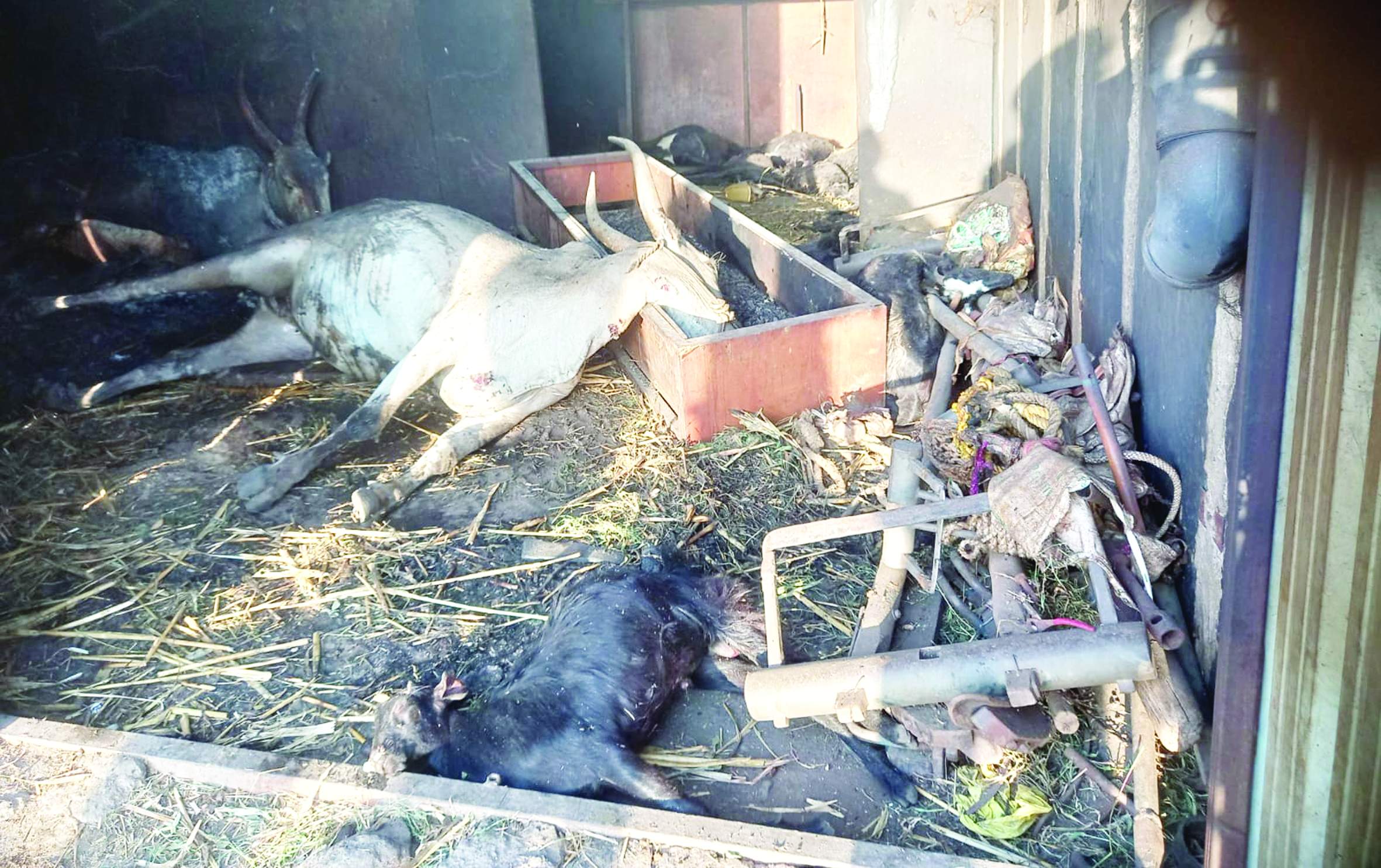 అగ్ని ప్రమాదంలో మృతి చెందిన ఎద్దులు