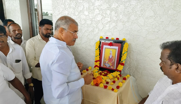 ప్రజాశక్తి-రామచంద్రపురం : వాల్మీకి జయంతిని రాష్ట్ర పండుగగా నిర్వహించాలని ముఖ్యమంత్రి జగన్ ఆదేశించారని రాష్ట్ర బీసీ సంక్షేమ శాఖ మంత్రి వేణుగోపాలకృష్ణ తెలియ చేశారు. ఆయన క్యాంపు కార్యాలయంలో శనివారం వాల్మీకి మహర్షి జయంతి ఉత్సవo నిర్వహించారు. కార్యక్రమంలో మంత్రి చెల్లుబోయిన శ్రీనివాస వేణుగోపాల కృష్ణ . వాల్మీకి చిత్రపటానికి పూలమాలలు వేసి ఘనంగా నివాళులర్పించారు. ఈ సందర్భంగా ఆయన మాట్లాడుతూ ధర్మాన్ని ఎలా రక్షించాలో వాల్మీకి మహర్షి తన రామాయణం ద్వారా ప్రజలకు అందించారని మనిషి సన్మార్గంలో నడిచేందుకు ఆయన చేసిన కృషిని మంత్రి అభినందించారు. ఈ కార్యక్రమంలో పలువురు వైసిపి నాయకులు ప్రజాప్రతినిధులు పాల్గొన్నారు.