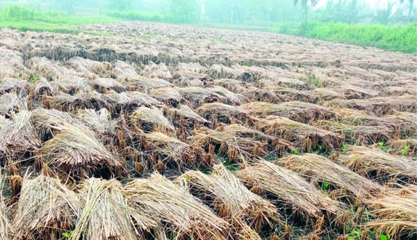 వరి పంట చేతికొచ్చే సమయంలో వరుణుడు తీవ్ర నష్టాన్ని తెచ్చిపెట్టాడు. మండలంలోని పలు గ్రామాలలో శుక్రవారం ఉదయం నుండి చిరుజల్లులు కురవడంతో పొల్లాల్లో కోతలు కోసి ఆరబెట్టిన వరి పంట తడిసిపోరుంది. ఒకవైపు వరి పంట కోతలకు సిద్ధంగా ఉండడంతో పంట చేతికి వచ్చే సమయంలోనే వర్షాలు కురుస్తుండడంతో రైతులు దిక్కుతోచని స్థితిలో ఉన్నారు. మండలంలోని పలు గ్రామాల్లో వందలాది ఎకరాల్లో వరి పంట కోతలకు సిద్ధంగా ఉంది. నీలకంఠాపురం, రాజం, పెద్దమదిన గున్నెంపూడి ,కొండపాలెం, బుచ్చయ్యపేట తదితర గ్రామాల్లో గత రెండు రోజులుగా కొంతమంది రైతులు వరి పంటను కోసి మడులలోనే విడిచిపెట్టారు. కోసిన వరి పంటను రెండు మూడు రోజులపాటు పొలాల్లో ఎండబెట్టి కుప్పలుగా పెడతారు. అయితే శుక్రవారం ఉదయం కురిసిన వర్షానికి పెద్దమదిన, గుణెంపూడి నీలకంఠాపురం తదితర గ్రామాల్లో కోసి పొలాల్లో విడిచిపెట్టిన వరి పంట తడిచిపోయింది. దీంతో రైతులు తీవ్ర ఆందోళన చెందుతున్నారు. పంట చేతికి వచ్చే సమయాల్లోనే వర్షాలు కురుస్తుండడం వరి పంటకు తీవ్ర నష్టం వాటిల్లుతుందని రైతులు వాపోతున్నారు.